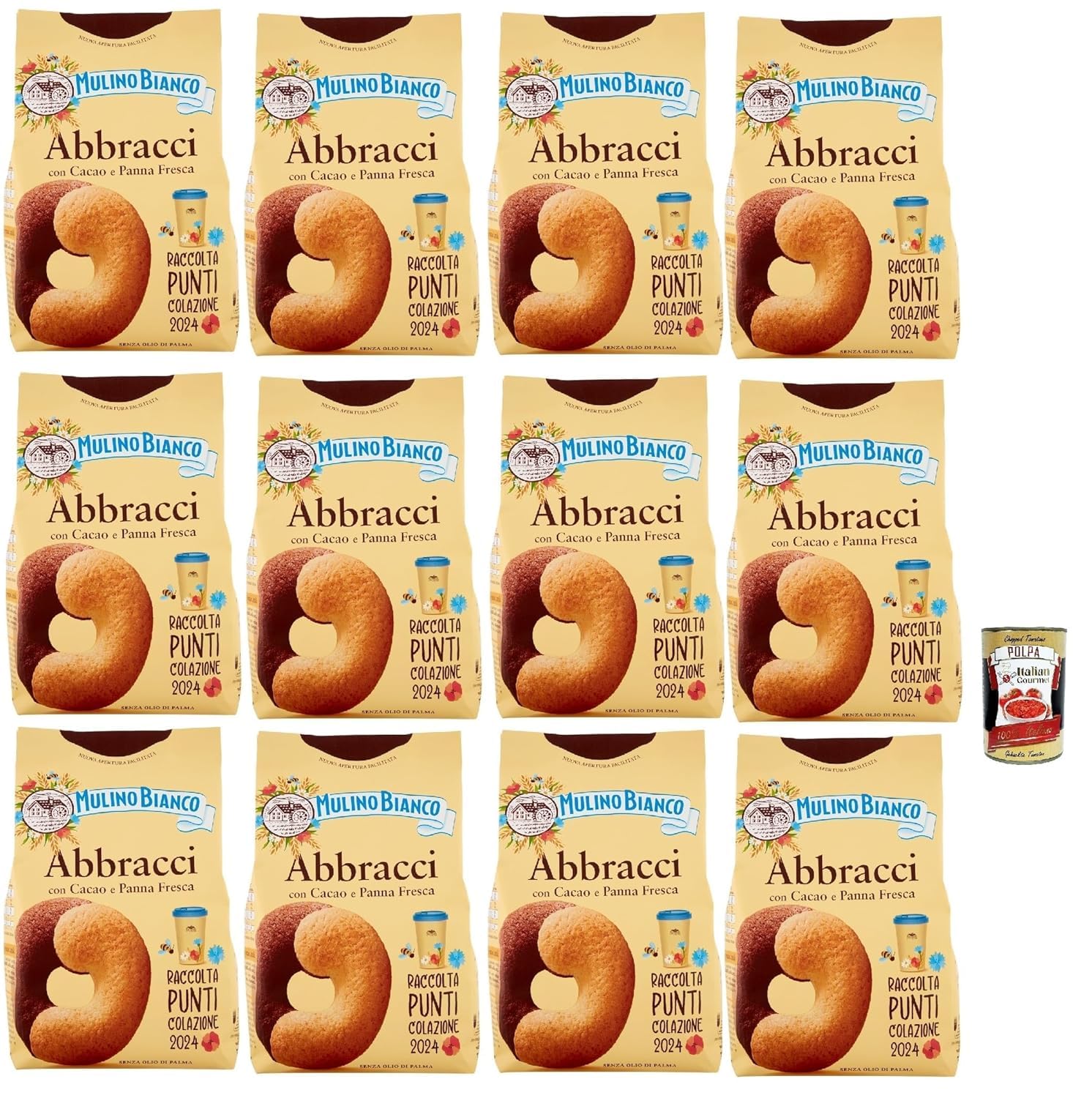 Italian Gourmet Value Pack: 12 x 350g of Abbracci Italian biscuits with cocoa and cream – crispy, salty, and perfect for breakfast or as a snack. Includes: Italian Gourmet Polpa for your stock. Flavor: Cocoa and cream – harmonious, mild, and balanced Size: Pack of 12 (12 x 350g) – Perfect for family and the office. Use: Ideal for coffee, cappuccino, tea, or as a snack. Use: Also great as a dessert topping, for crumbles, cakes, and creative recipes. Note: Ingredients, nutritional information, and allergens should be found on the individual product packaging. Store in a cool, dry place away from light. With the 6 x 700g Value Pack, you'll always have a supply on hand. Included in the pack: Italian Gourmet Polpa – for your Italian recipes, pasta, and sauces. INGREDIENTS Ingredients: Wheat flour 57.3 - Sugar - Butter - Sunflower oil - Fresh pasteurized premium eggs - 4.3 - Cocoa 2.5 - Fresh pasteurized cream 2.2 - Honey - Salt - Spray (sodium bicarbonate, ammonium bicarbonate) - Vanillin flavoring - Percentage indicated on the final product. May contain traces of nuts, mustard, and soy. SAFETY WARNING Storage: Store in a cool, dry place away from light. Close the bag tightly after opening. MANUFACTURER'S DETAILS BARRILLA G. E R. F.LLI S.P.A., VIA MANTOVA 166, 43122, PARMA, IT See moreItalian Gourmet 12 x 350 g Biscuits italiens Abbracci Cacao Crème – Pâtisserie brisée pour petit déjeuner et collation, pack familial, compagnon de café, original d'Italie Italian Gourmet PolpaDESCRIPTION DU PRODUIT DESCRIPTION DU PRODUIT Pack économique Italian Gourmet : 12 × 350 g de biscuits italiens Abbracci au cacao et à la crème – croustillants, salés et parfaits pour le petit déjeuner ou comme collation. Inclus : Italian Gourmet Polpa pour vos stocks. Goût : cacao et crème - harmonieux, doux et équilibré Format : lot de 12 (12 × 350 g) – Parfait pour la famille et le bureau. Utilisation : idéal pour le café, le cappuccino, le thé ou comme collation. Utilisation : également comme garniture de dessert, pour les crumbles, les gâteaux et les recettes créatives. Remarque : les ingrédients, les valeurs nutritionnelles et les allergènes doivent être consultés dans l'emballage respectif du produit. Conserver dans un endroit frais, sec et à l'abri de la lumière. Avec le pack économique de 6 × 700 g, vous avez toujours un stock à la maison. Inclus dans le pack : Italian Gourmet Polpa – pour vos recettes italiennes, pâtes et sauces. INGRÉDIENTS Ingrédients : farine de blé 57,3 - Sucre beurre - Huile de tournesol - Œufs frais frais pasteurisés de qualité supérieure - 4,3 - Cacao 2,5 - Crème pasteurisée fraîche 2,2 - Miel sel - Pulvérisateur (hydrogénocarbonate de sodium, hydrogénocarbonate d'ammonium) - Arôme de vanilline - Pourcentage indiqué. sur le produit final. Peut contenir des traces de noix, de moutarde et de soja. AVERTISSEMENT DE SÉCURITÉ Stockage : frais, sec et à l'abri de la lumière bien fermer le sac après ouverture COORDONNÉES DU FABRICANT BARILLA G. E R. F.LLI S.P.A., VIA MANTOVA 166, 43122, PARMA, IT Voir plus