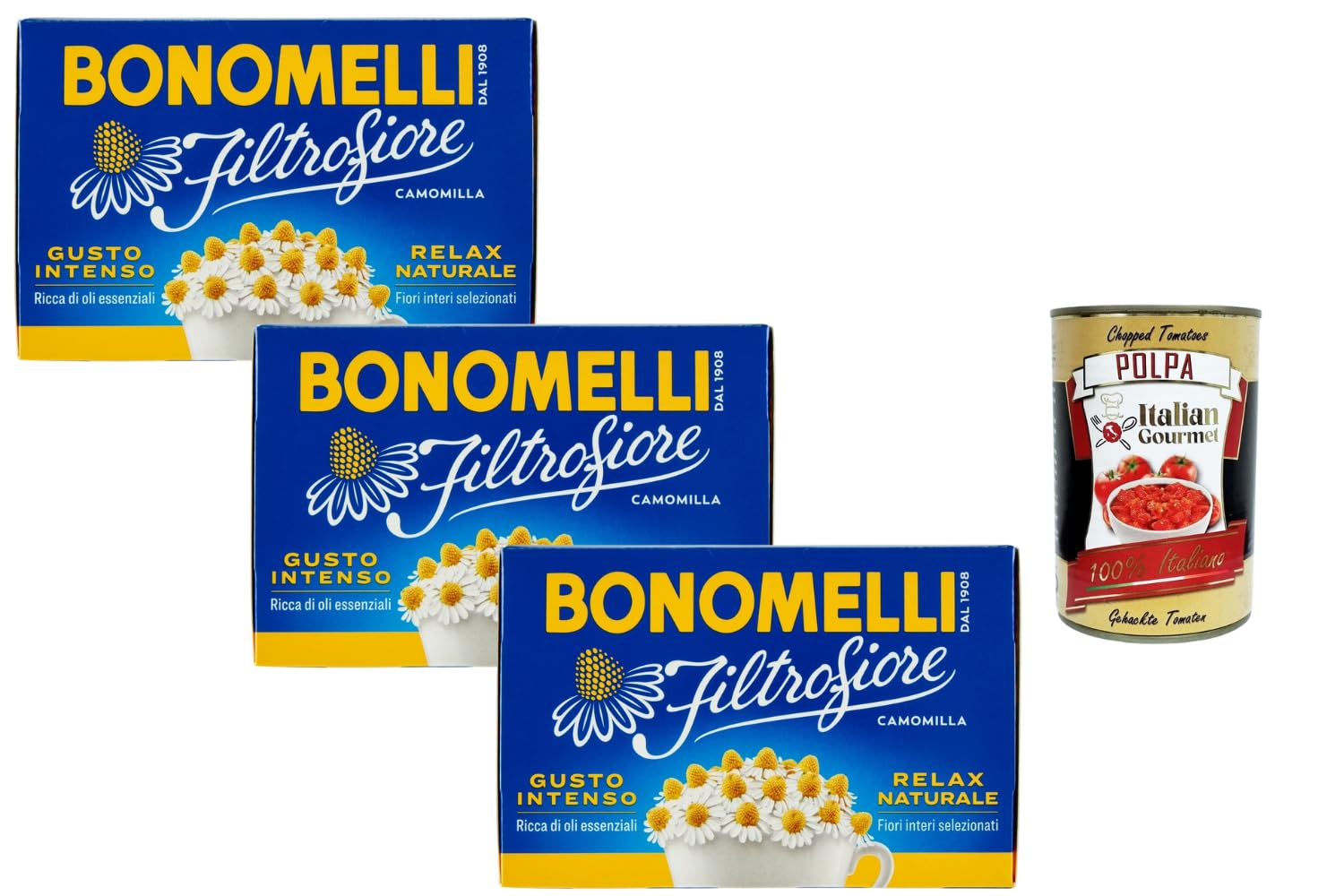 Italian Gourmet E.R. Italian Gourmet Chamomile Tea Bags 3 x 28g (14 bags each) Intense flavor natural relaxation whole flowers herbal tea for evening and everyday use + Italian Gourmet Polpa