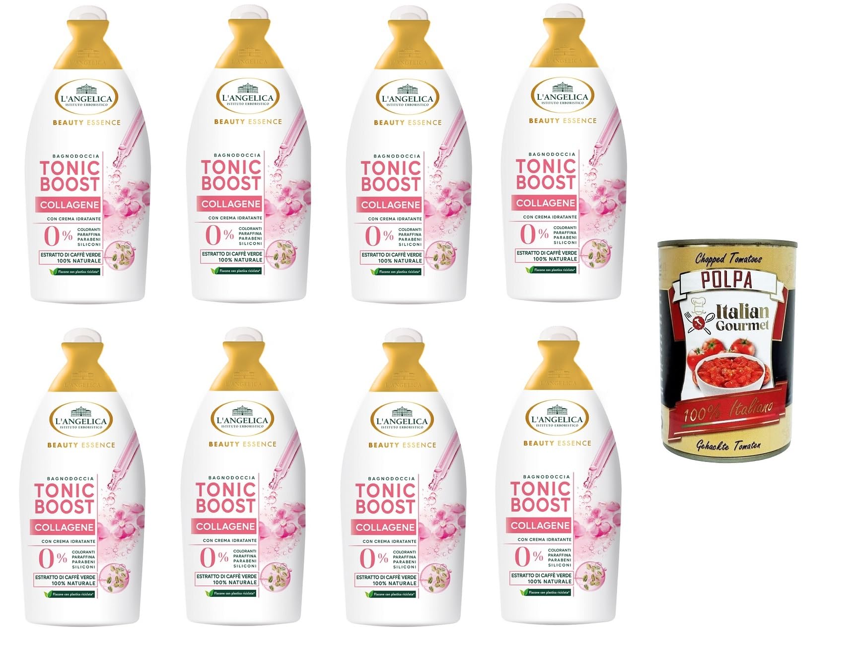 L'Angelica Beauty Essence Body Wash Tonic Boost Collagène à l'extrait de café vert - 8 x 520 ml Italian Gourmet Polpa 400 g