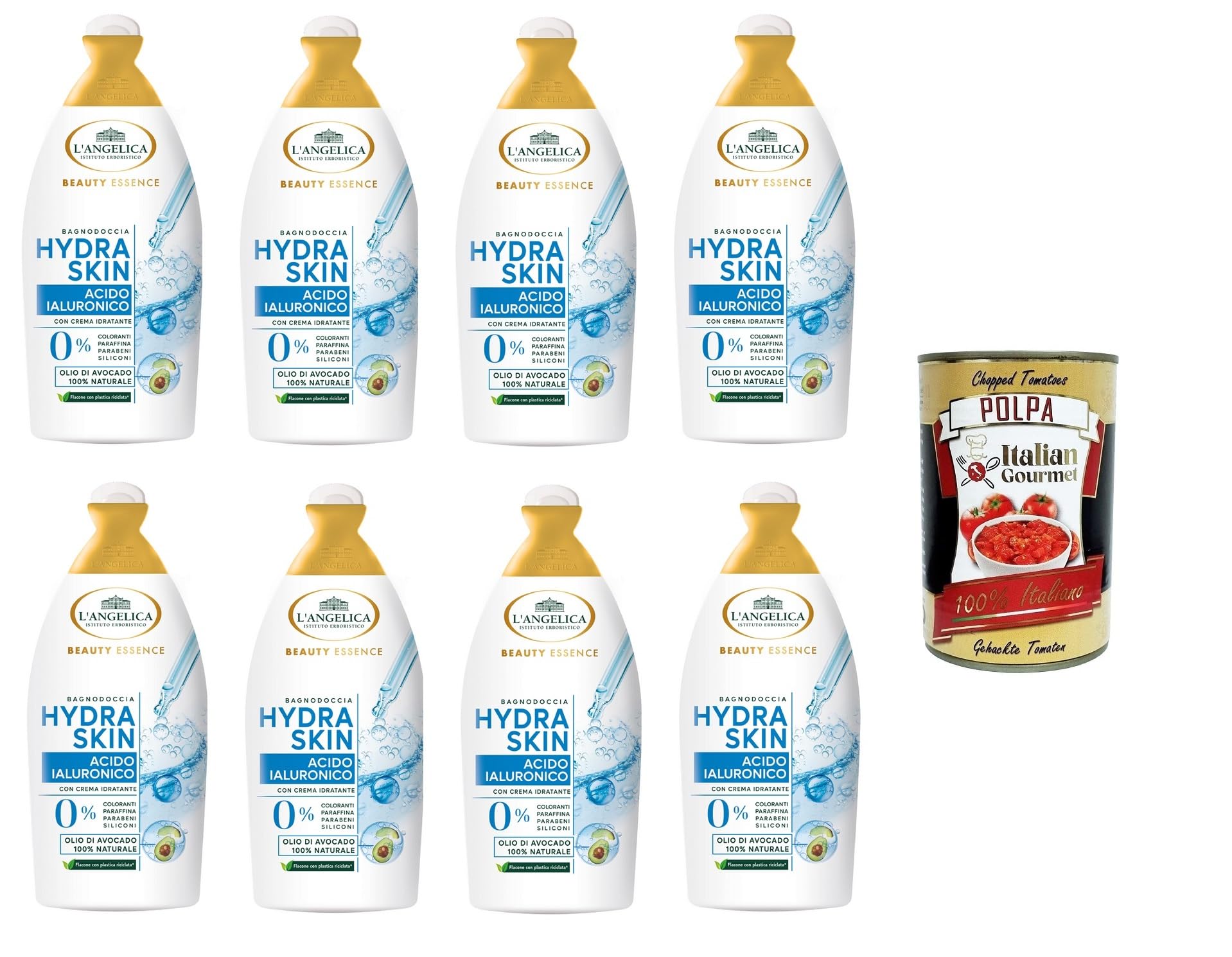 Italian Gourmet E.R. L'Angelica Beauty Essence Hydra Skin Body Wash Hyaluronic Acid with Avocado Oil 8 x 520ml + Polpa Italian Gourmet 400g