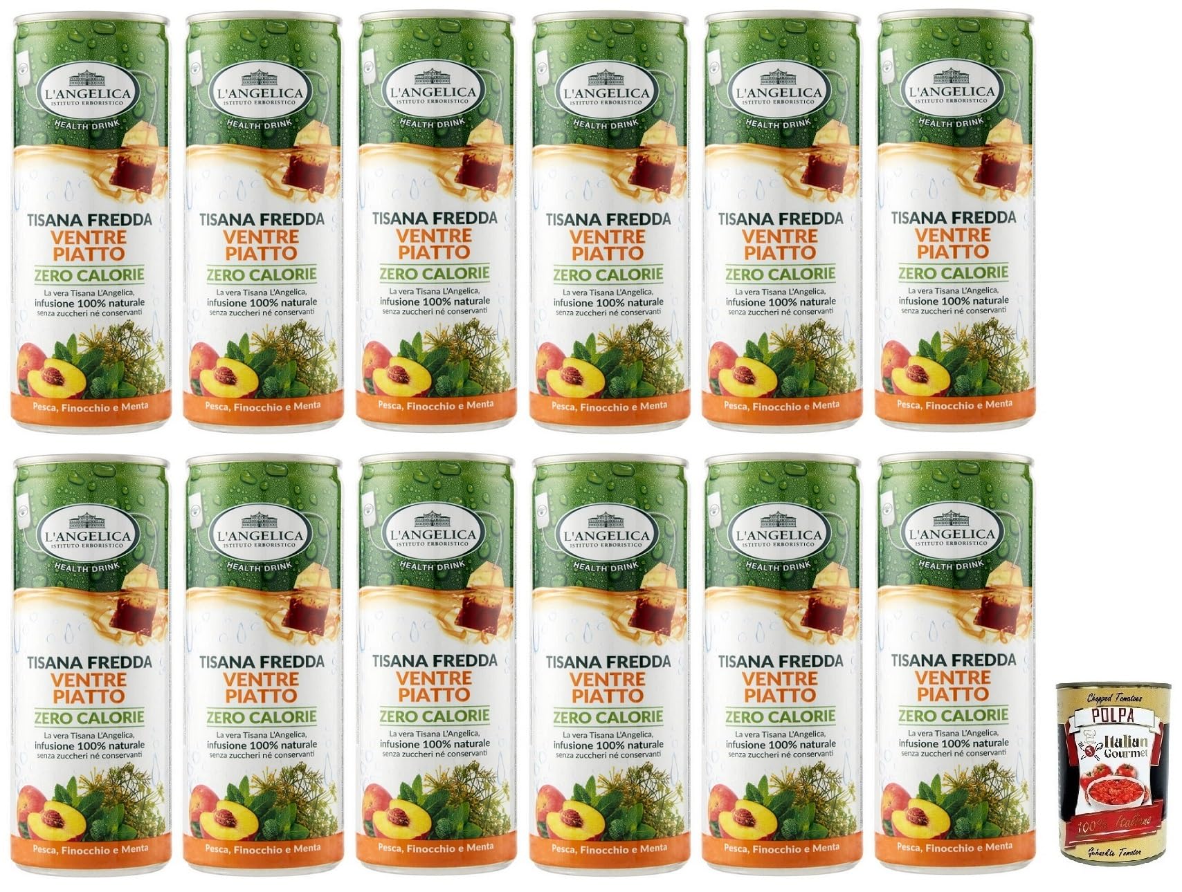 Italian Gourmet E.R. L'Angelica Tisana a Freddo Ventre Piatto Set of 12 cold herbal teas with peach fennel and mint flavor calorie-free sugar-free disposable box of 240 ml + 400 g Italian Gourmet Polpa di Pomodoro