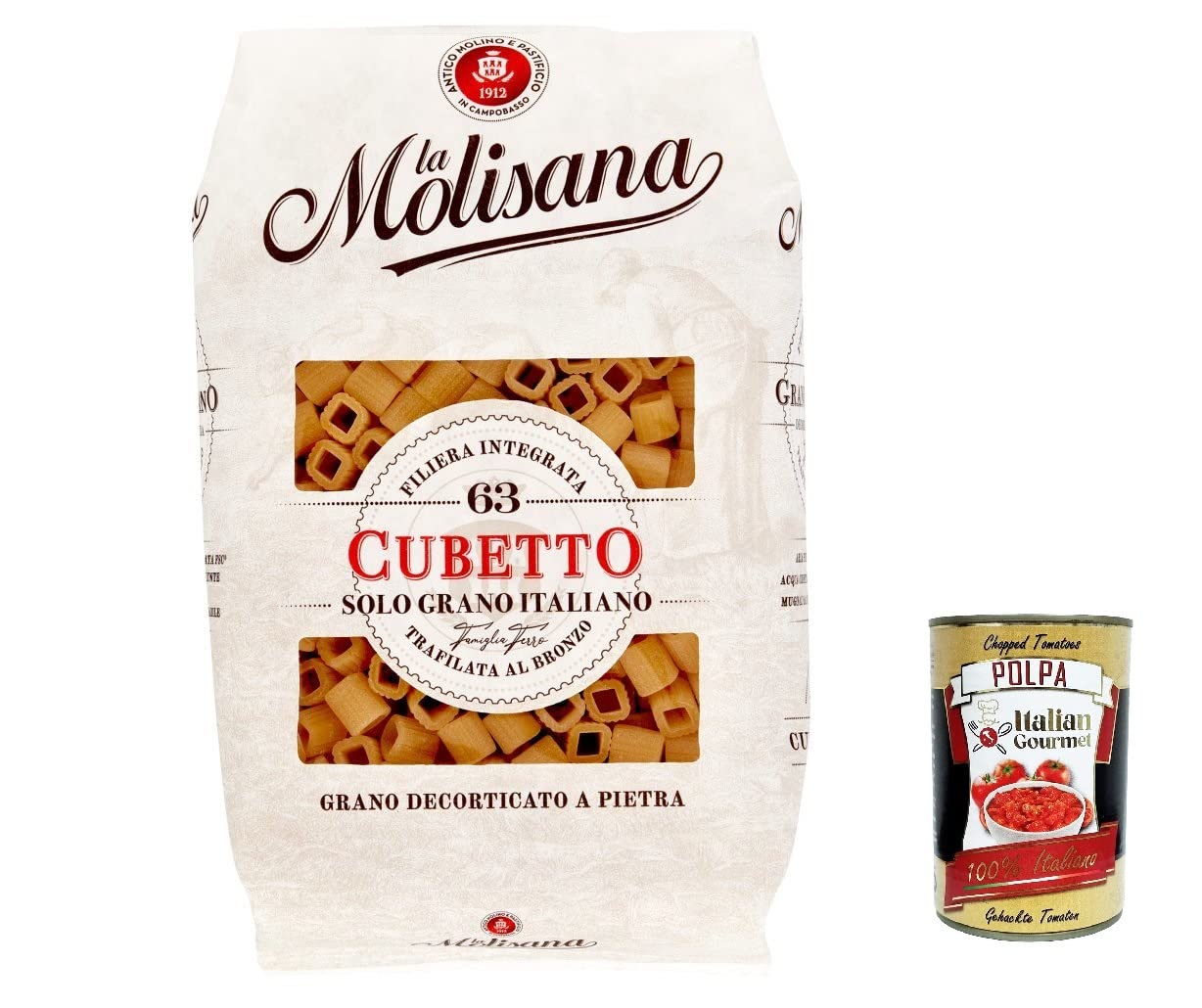 Italian Gourmet E.R. La Molisana Cubetto N. 63 Pasta Lenta Lavorazione Durum Wheat Semolina Pasta 500 g + Pulp Italian Gourmet Pulp 400 g