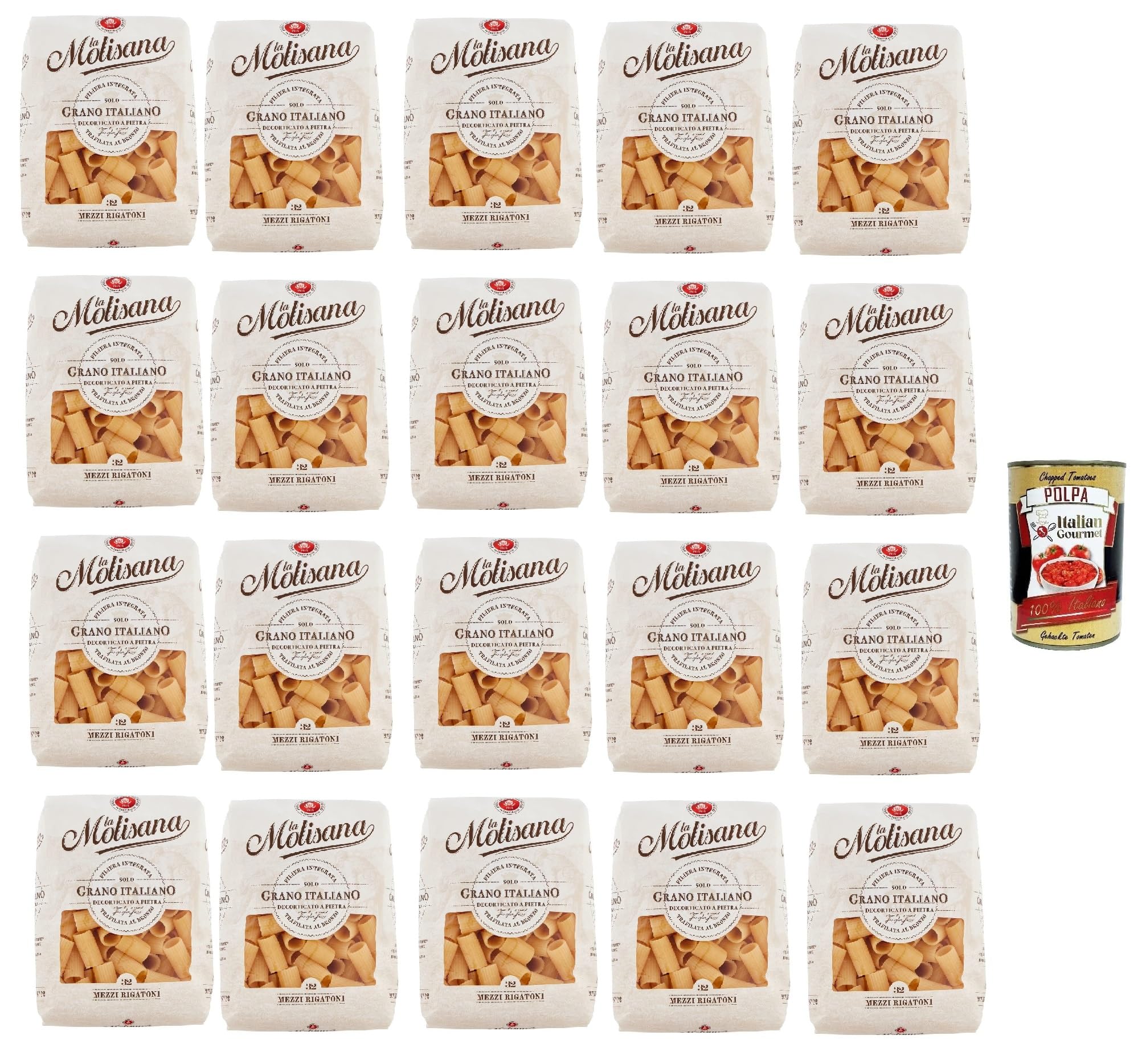 Italian Gourmet E.R. La Molisana Mezzi Rigatoni No. 32 Pasta Lenta Lavorazione Bronze Modelling Clay 500 g + Pulpa Gourmet Italian 400 g Pack of 20