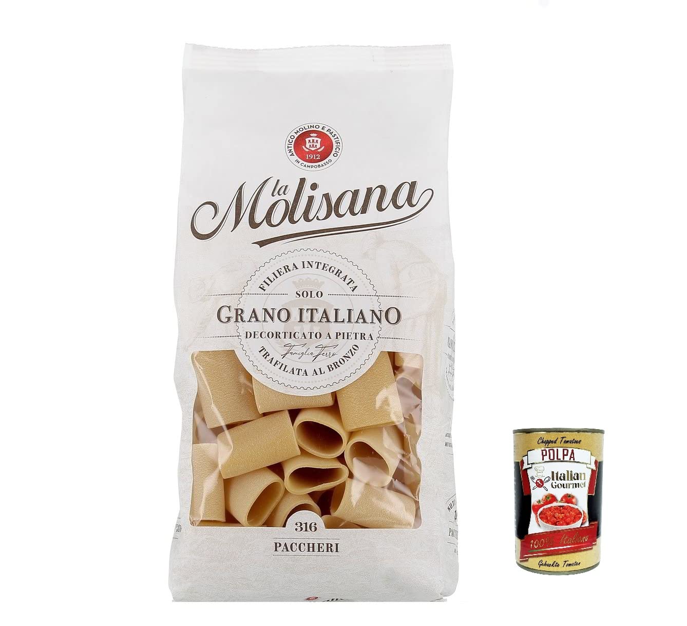 La Molisana Paccheri N. 316 Pasta Lenta Lavorazione Lot de 3 pâtes à base de semoule de blé dur Bronze 500 g Polpa Italian Gourmet Polpa 400 g