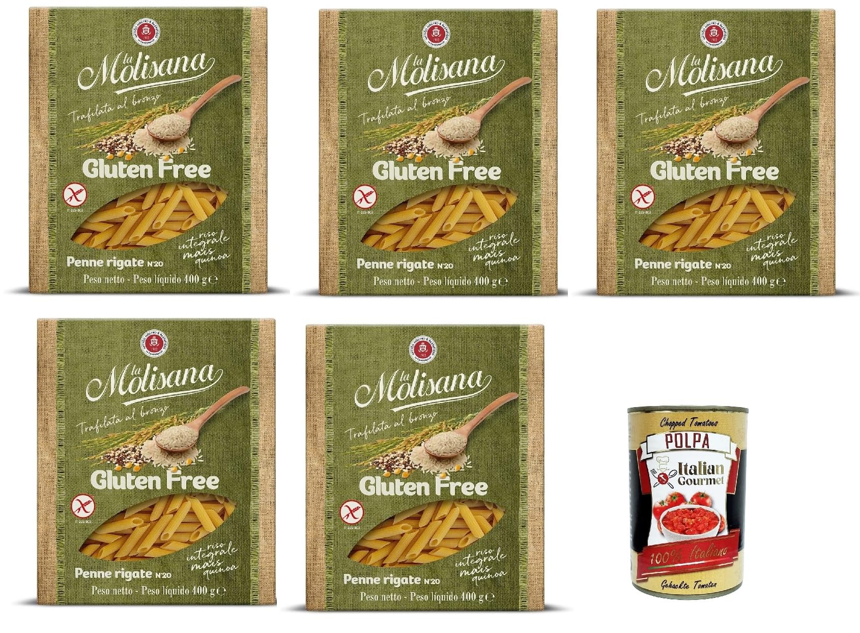 Italian Gourmet E.R. La Molisana Penne Rigate n. 20 Gluten-Free Pasta with Rice Corn and Quinoa Gluten-Free 400 g + Italian Gourmet Pulp 400 g