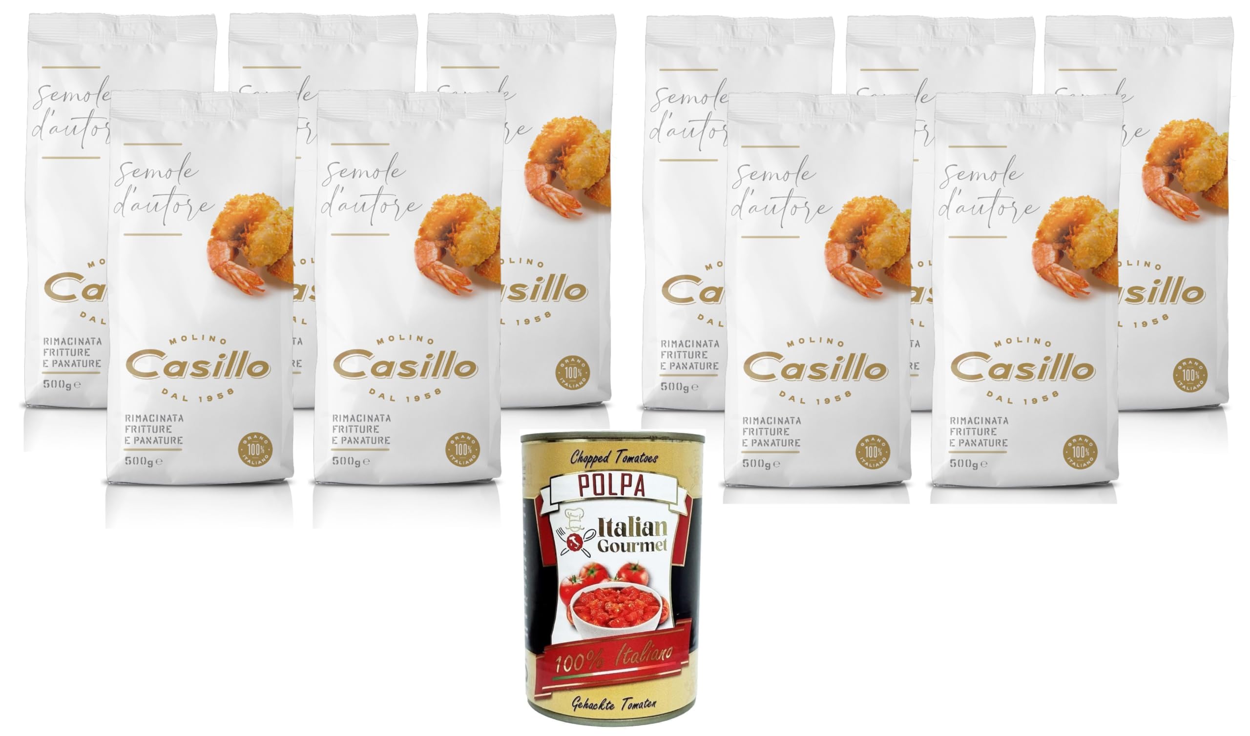 Semolina D'Autore - Frying Breading 500g Semolina D'Autore - Frying Breading from Selezione Casillo is a high-quality Italian durum wheat semolina specially designed for breading and frying. Thanks to its special grain, it ensures a uniform, golden, and extra crispy crust. The breading adheres perfectly and absorbs very little oil during frying, resulting in a light, dry, and aromatic product. Product Benefits: Ideal for frying and breading - Crispy and consistent results Casillo Selection - Premium durum wheat from the traditional Italian mill Light and golden breading - Less oil absorption Versatile: Meat, fish, vegetables, cheese, and vegan dishes 100 natural durum wheat semolina - No additives Perfect for escalopes, fish fillets, seafood, vegetables, arancini, mozzarella, croquettes, and many other classic and modern recipes. Product Details: Net weight: 500 g Type: Durum wheat semolina for frying and breading Origin: Italy Selection: Casillo Suitable for: Vegetarian and vegan diets Allergens: Contains glutenLe Semole D'Autore Fritures Panures 10 x 500 g - Semoule de blé dur de qualité supérieure - Sélection Casillo - Panure croustillante Résultat de friture parfait Italian Gourmet PolpaDESCRIPTION DU PRODUIT Le Semole D'Autore - Fritures Panures 500g Le Semole D'Autore - Fritture e Panature de la Selezione Casillo est une semoule de blé dur italienne de haute qualité spécialement conçue pour les panures et les fritures. Grâce à son grain spécial, il assure une croûte uniforme, dorée et extra croustillante. La panure adhère parfaitement et n'absorbe que peu d'huile lors de la friture, pour un résultat léger, sec et aromatique. Avantages du produit : Idéal pour les fritures et panures - Résultats croustillants et stables Casillo Selection - Blé dur de qualité supérieure issu de la tradition italienne du moulin Panure légère et dorée – moins d'absorption d'huile Polyvalent : viande, poisson, légumes, fromage et plats végétaliens Semoule de blé dur 100 naturelle - Sans additifs Parfaitement adapté pour Escalopes, filets de poisson, fruits de mer, légumes, arancini, mozzarella, crocchette et beaucoup d'autres recettes classiques et modernes. Détails du produit : Contenance : 500 g Type : semoule de blé dur pour fritures et panures Origine : Italie. Sélection: Casillo Convient pour : régime végétarien et végétalien Allergènes : contient du gluten