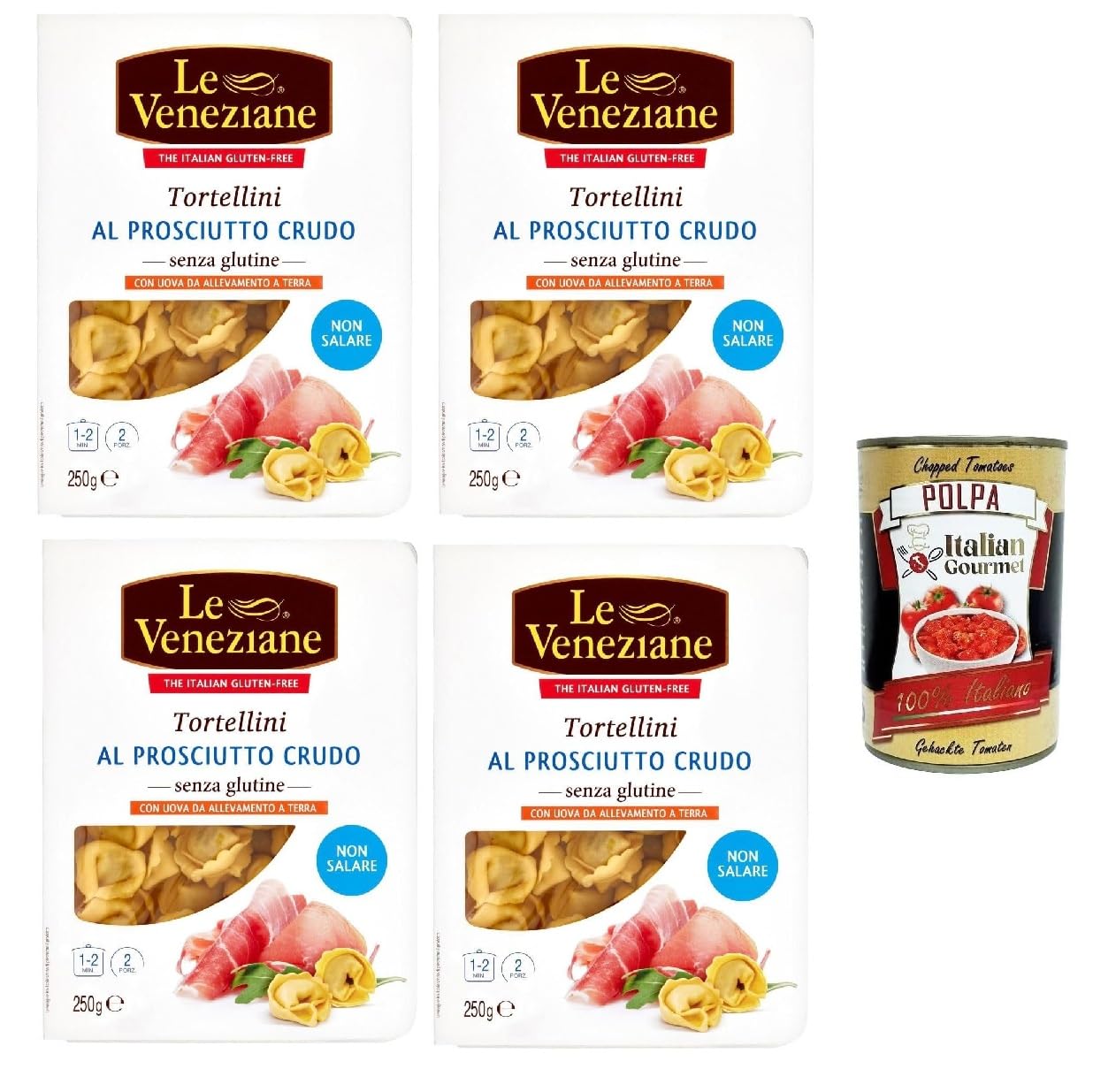 Le Veneziane Tortellini Prosciutto crudo senza glutine, jambon cru, tortellini sans gluten, pâtes sans gluten, 250 g Italian Gourmet polpa 400 g