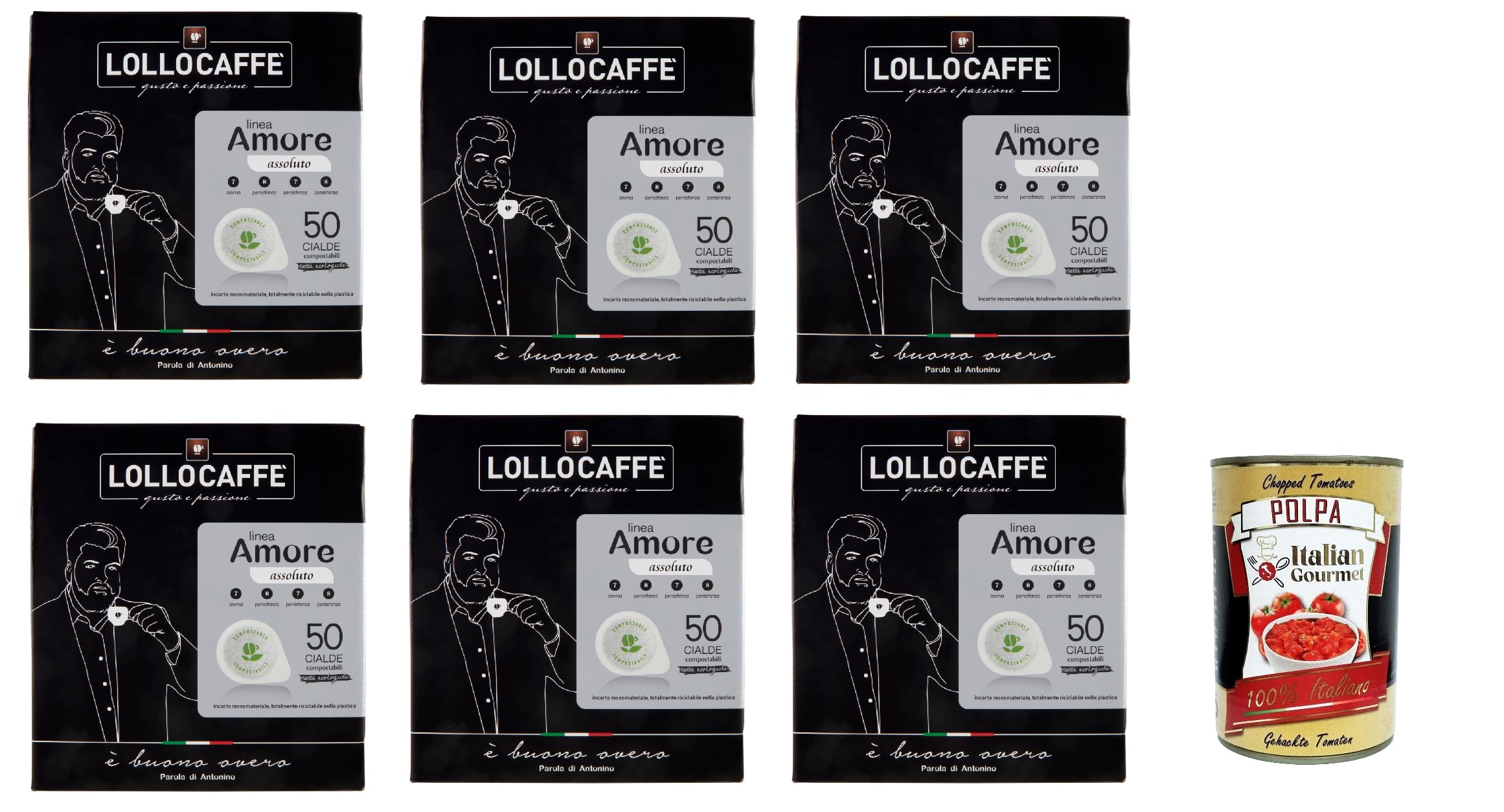 Lollo caffè linea amore assoluto Lot de 6 paquets de 50 x 7,5 g polpa italien Gourmet 400 g
