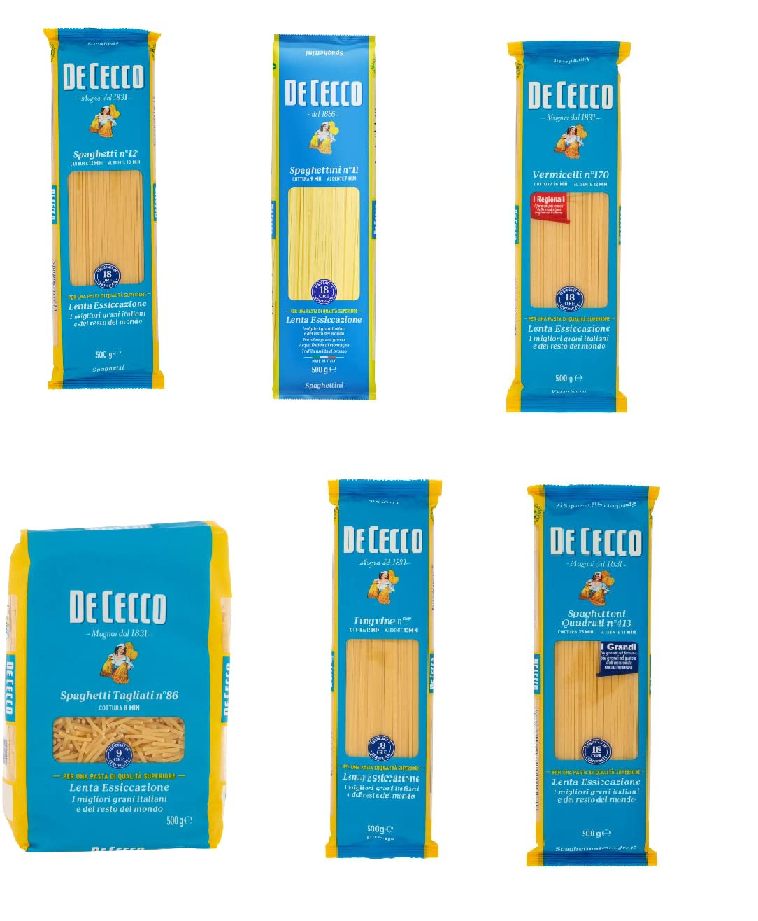 Lot de 6 spaghettis Spaghettini de Cecco 500 g Polpa Italian Gourmet Polpa 400 g