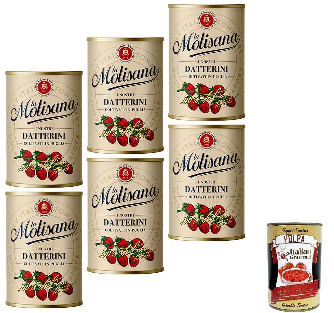 Lot de 6 tomates Molisana Datterini Puglia - 400 g Italian Gourmet Polpa 400 g