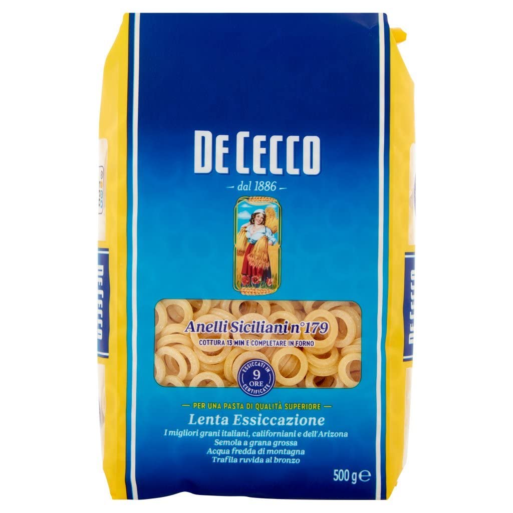 Lot de 24 pâtes de Cecco 100 italiennes Anelli Siciliani n. 179 pâtes 500 g Polpa Italian Gourmet 400 g