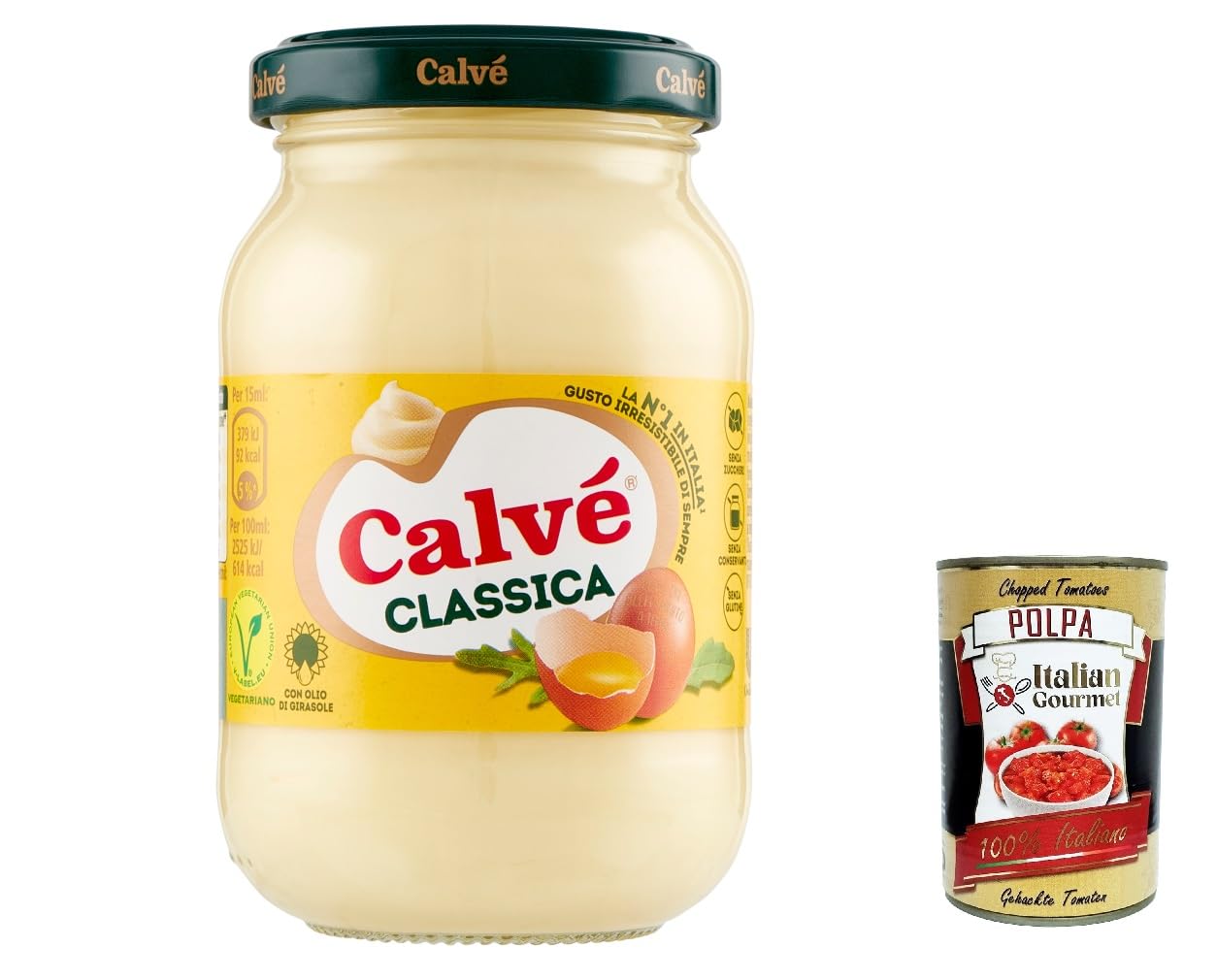 Lot de 6 calvés Maionese Classica à l'huile de tournesol, idéal pour sandwich et kanties, sans conservateurs et sans sucre, sans gluten, 225 ml polpa italien Gourmet 400 g