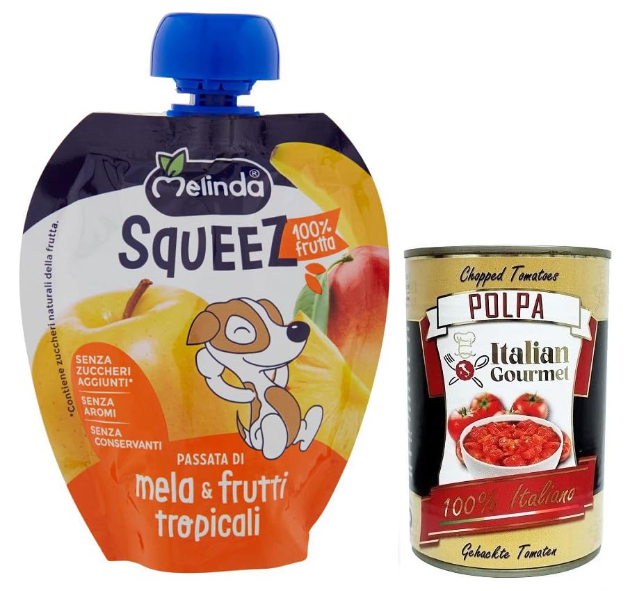 Italian Gourmet E.R. Melinda Mela & Frutti Tropicali Squeez 100% Tropical Fruit and Apple Puree 90g + 400g Box