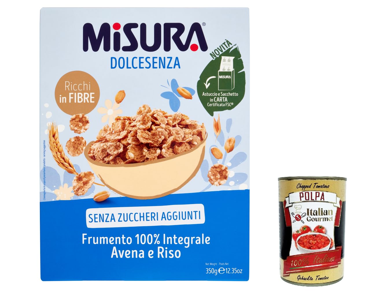 Misura Cereali Integrali Fiocchi di Frumento Dolcesenza Lot de 6 flocons d'avoine et riz sans sucre ajouté 350 g polpa italien Gourmet 400 g