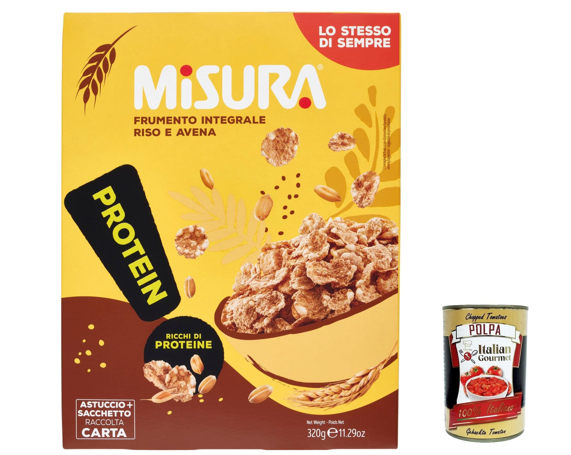 Misura Cereali Lot de 3 protéines de blé entier, riz et avoine, riches en protéines et fibres, 320 g Italian Gourmet polpa 400 g
