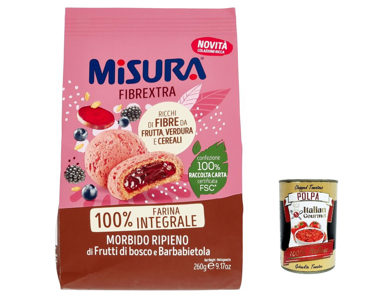 Misura Frollino Integrale Fibrextra Lot de 12 pâtes brisées à grains entiers avec garniture aux baies sauvages et betteraves rouges 100 farine de blé entier, 260 g Polpa Italian Gourmet polpa 400 g