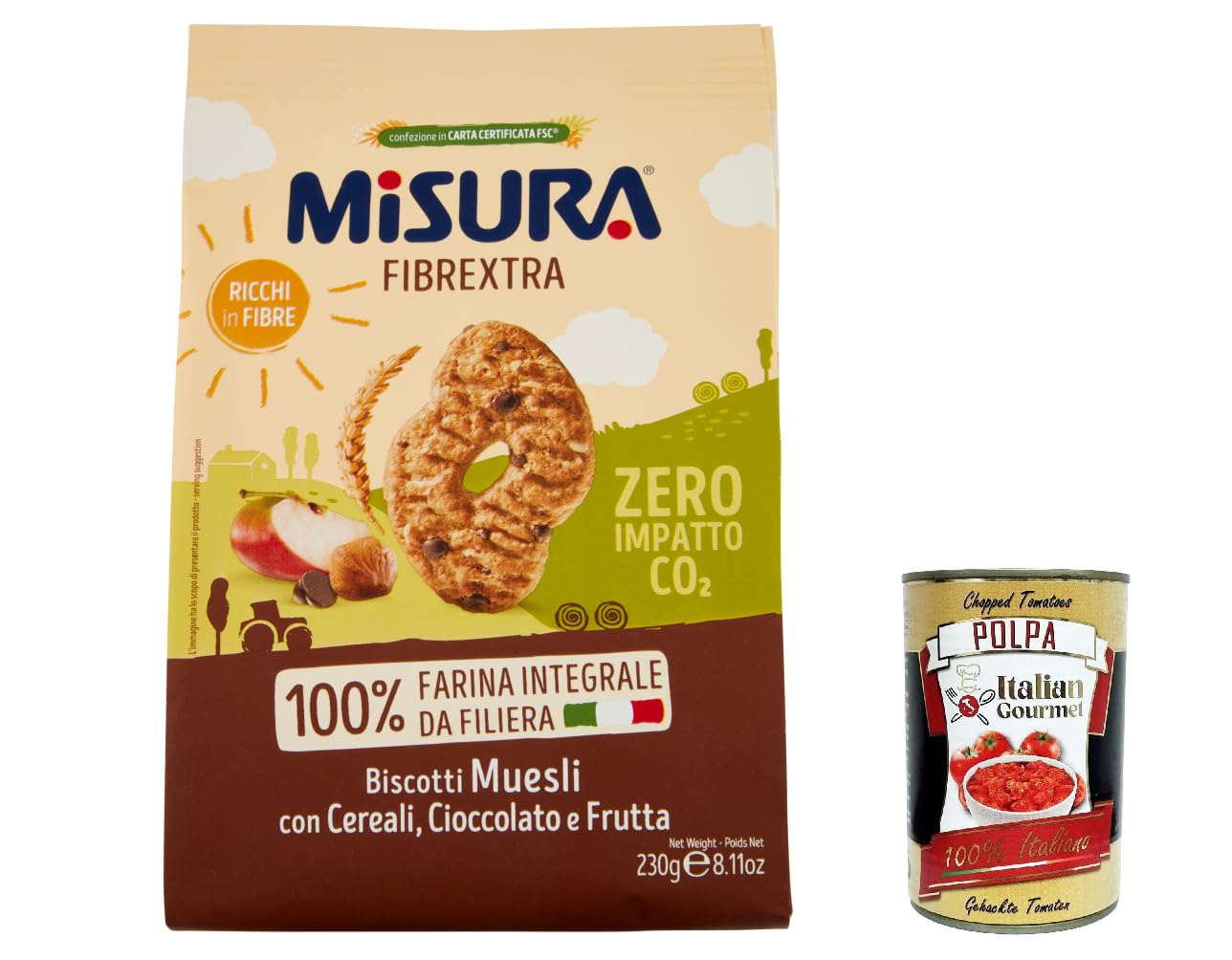 Italian Gourmet E.R. Misura Integrali Fibrextra Muesli Whole Biscuits with Cereal Chocolate and Fruit Drops 100% Whole Wheat Flour High in Fibre 230 g Set of 6