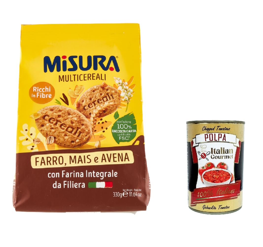 Italian Gourmet E.R. Misura Integrali Whole Grain Cookies with Crispy Cereal 330g + Italian Gourmet Polpa 400g Set of 6