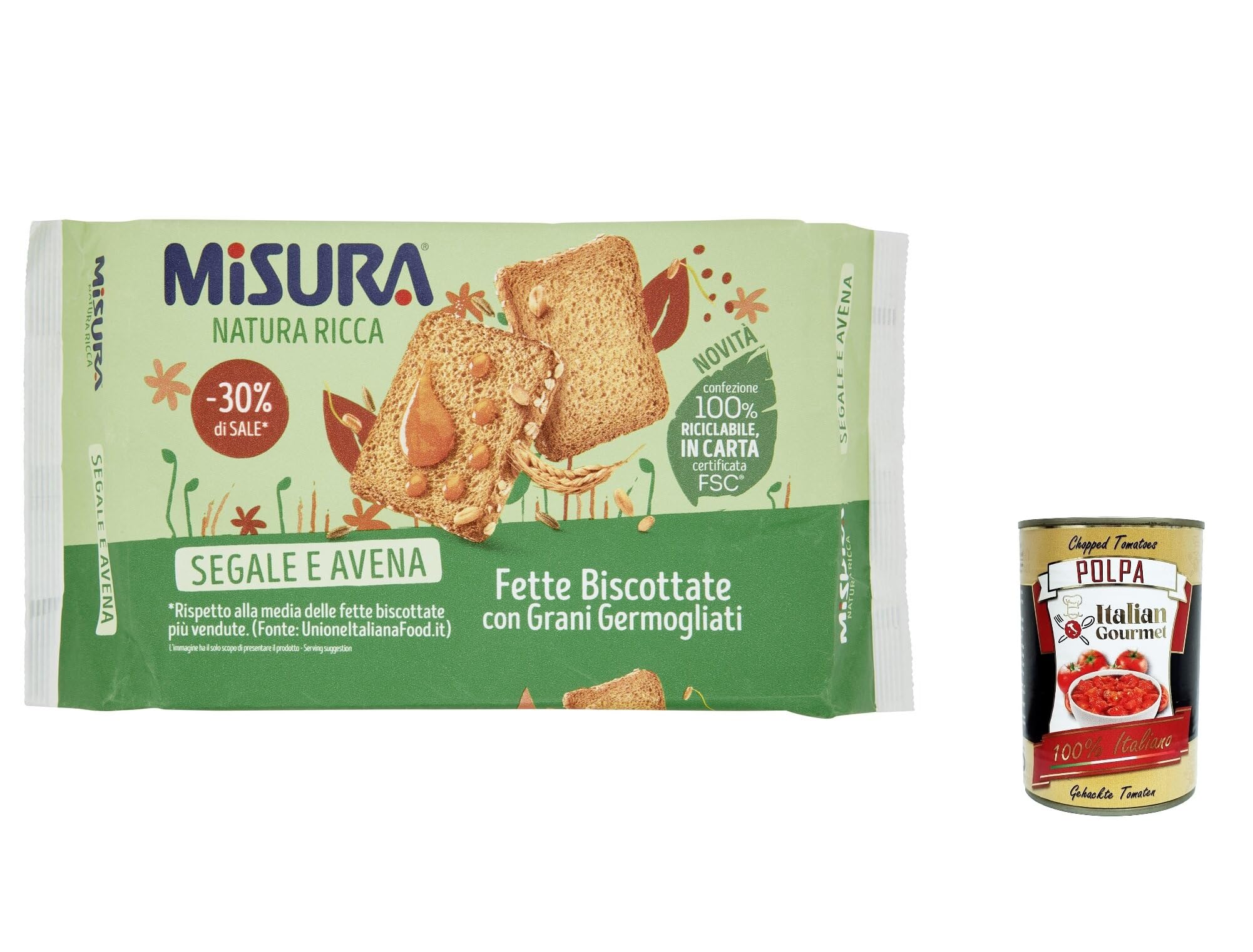 Misura Natura Ricca Segale e Avena Lot de 12 biscottes avec grains germés 320 g polpa Italian Gourmet 400 g