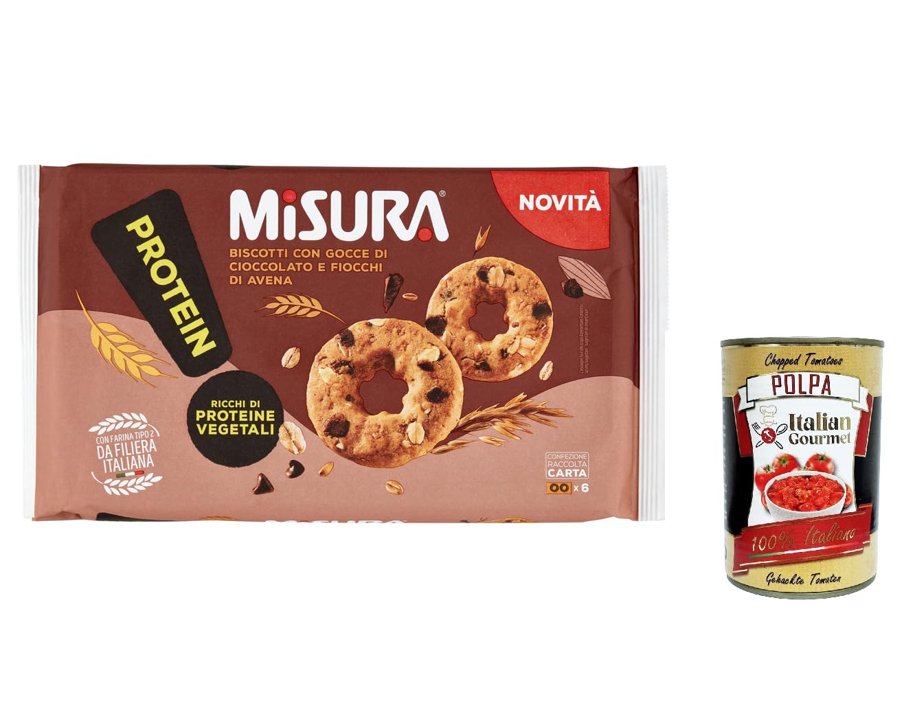 Misura Lot de 12 biscuits protéinés avec pépites de chocolat et flocons d'avoine Riche en protéines végétales Farine italienne, biscuits cookies 260 g Polpa Italian Gourmet polpa 400 g
