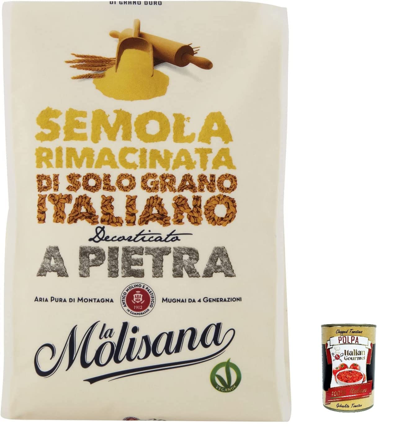 Italian Gourmet E.R. Molisana Semola Rimacinata di Grano Duro Durum Lot de 5 arrosoirs de bl 1 kg pour pizza + Italian Gourmet Polpa 400 g