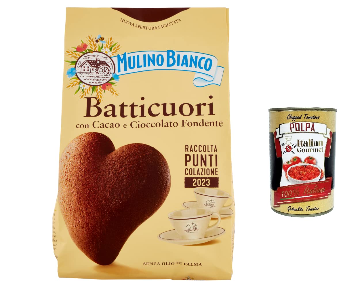 Italian Gourmet E.R. Mulino Bianco Batticuori Lot of 6 cocoa sanded biscuits 350 g + pulp 400 g