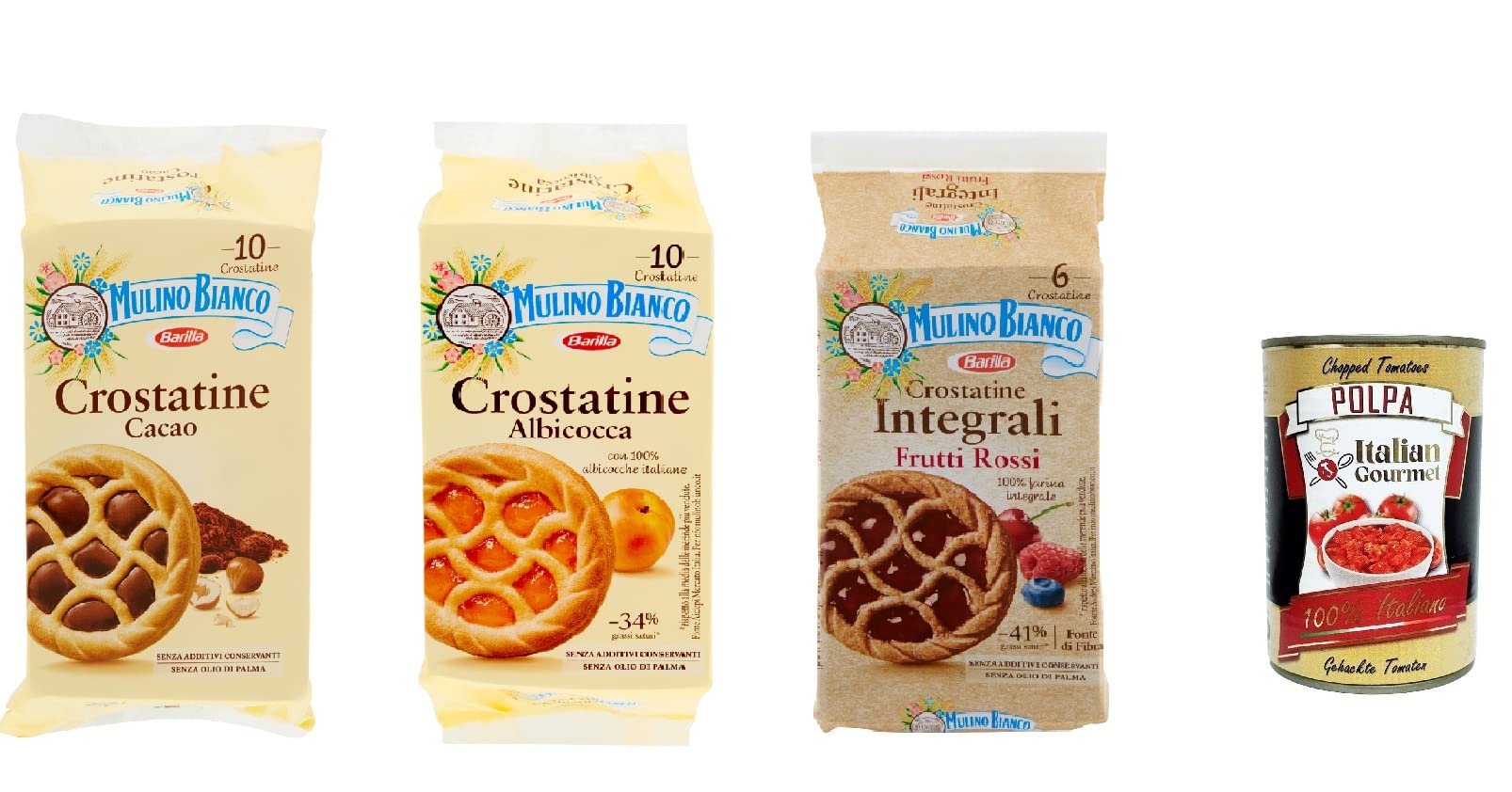 Mulino Bianco Crostatina Kit de test Cacao Albicocca Frutti Rossi cacao, abricot, fruits rouges polpa gourmet italien 400 g