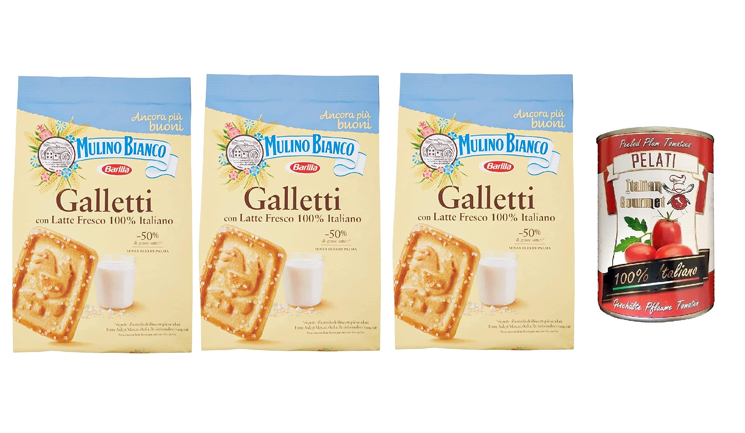 Italian Gourmet E.R. Mulino Bianco Galletti Italian Biscuits 3 x 350 g + 100% Italian Tomato Boxes 400 g
