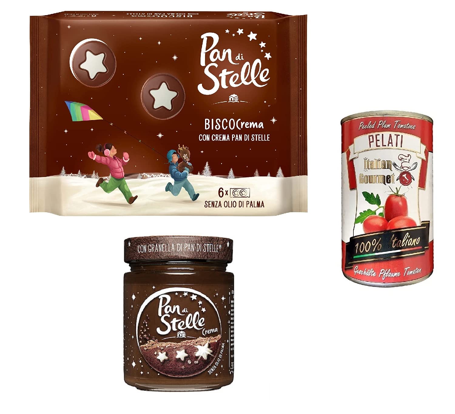 Italian Gourmet E.R. Mulino Bianco Pan di stelle Biscocrema 160 g + Pan di stelle Hazelnut Spicable Cream Spread 330 g + Italian Gourmet 100% Boxes of Crushed Tomatoes 400 g