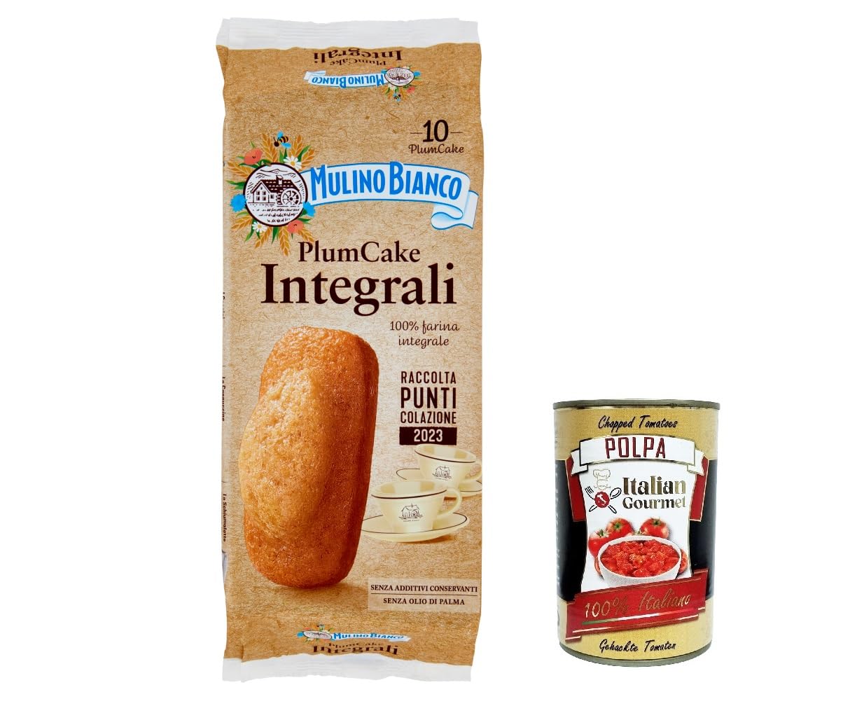 Italian Gourmet E.R. Mulino Bianco Plumcake Integrali Set of 6 Snacks for Plum Cakes with 100% Whole Wheat Flour 10 Pieces 330 g + Polpa Italian Gourmet Polpa 400 g