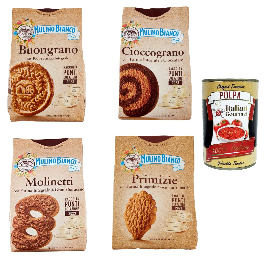 Italian Gourmet E.R. Mulino bianco Test kit 100% whole wheat flour biscuits Molinetti Buongrano Cioccograno Primizie + Italian Gourmert Pulp 400 g