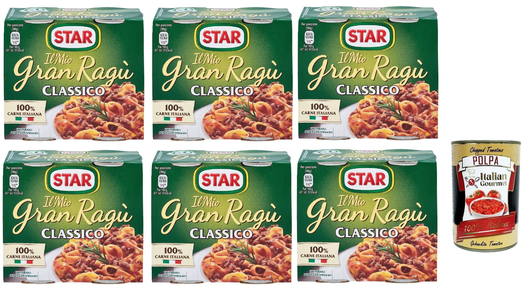 Italian Gourmet E.R. My Gran Rag Star Classico Lot de 6 sauces tomate 2 x 180 g de sauce tomate + Italian Gourmet Polpa 400 g