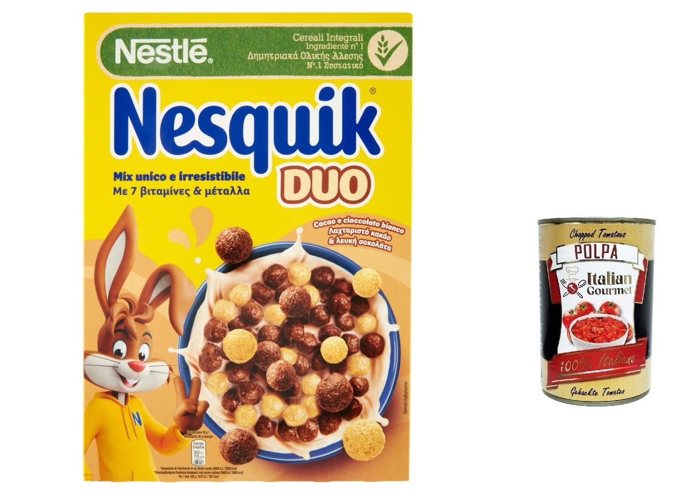 Italian Gourmet E.R. Nesquik Cereals Duo Cereal Chocolate Balls and White Chocolate Balls 325g + Italian Gourmet Polpa 400g