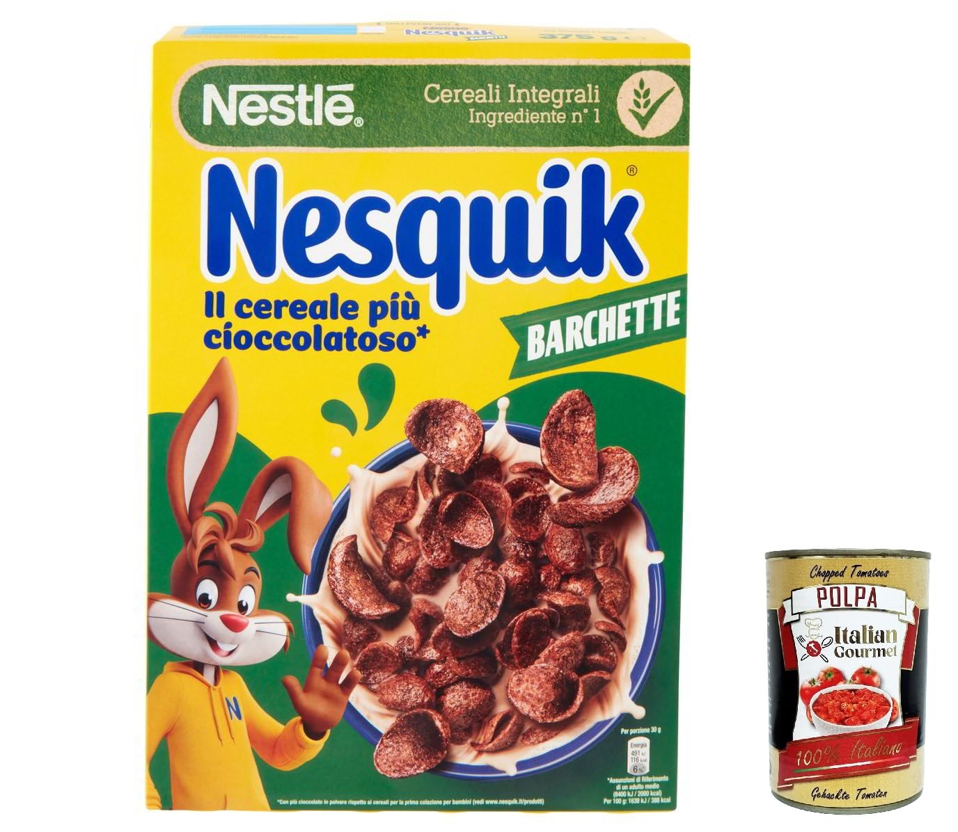 Italian Gourmet E.R. NESQUIK NESTL Nesquik Choco Waves 375 GR Set of 6 crispy chocolate muesli + Italian pulp Gourmet 400 g