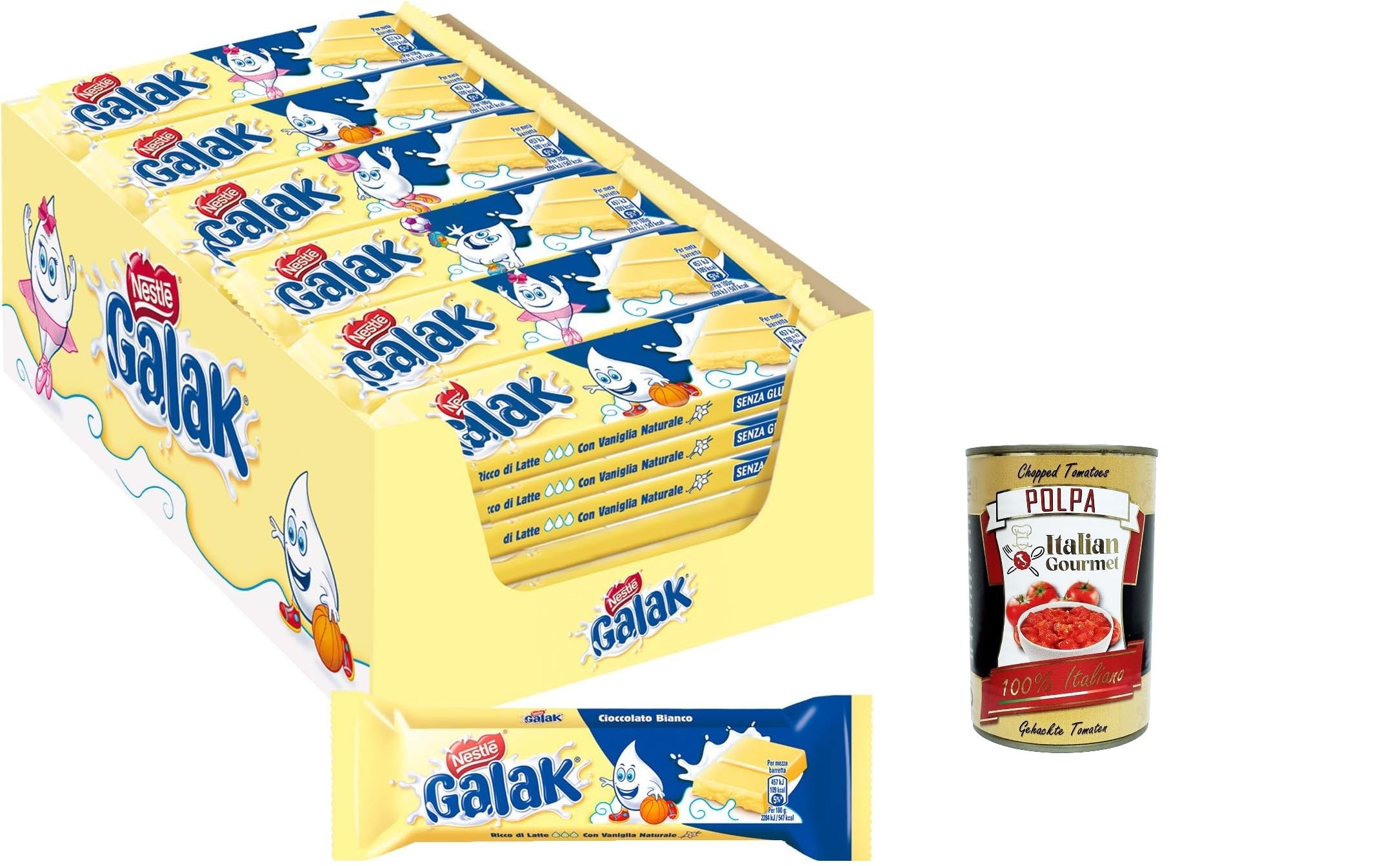 Italian Gourmet E.R. Nestl Galak White Chocolate Bars 40g pack of 36 bars + Italian gourmet polpa 400g
