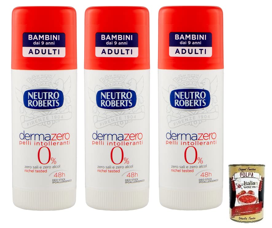 Neutro Roberts Dermazero Lot de 3 déodorants intolérants pour la peau, sans sel, sans alcool, durée jusqu'à 48 heures, hypoallergénique 40 ml boîte italienne Gourmet Polpa di Pomodoro 400 g