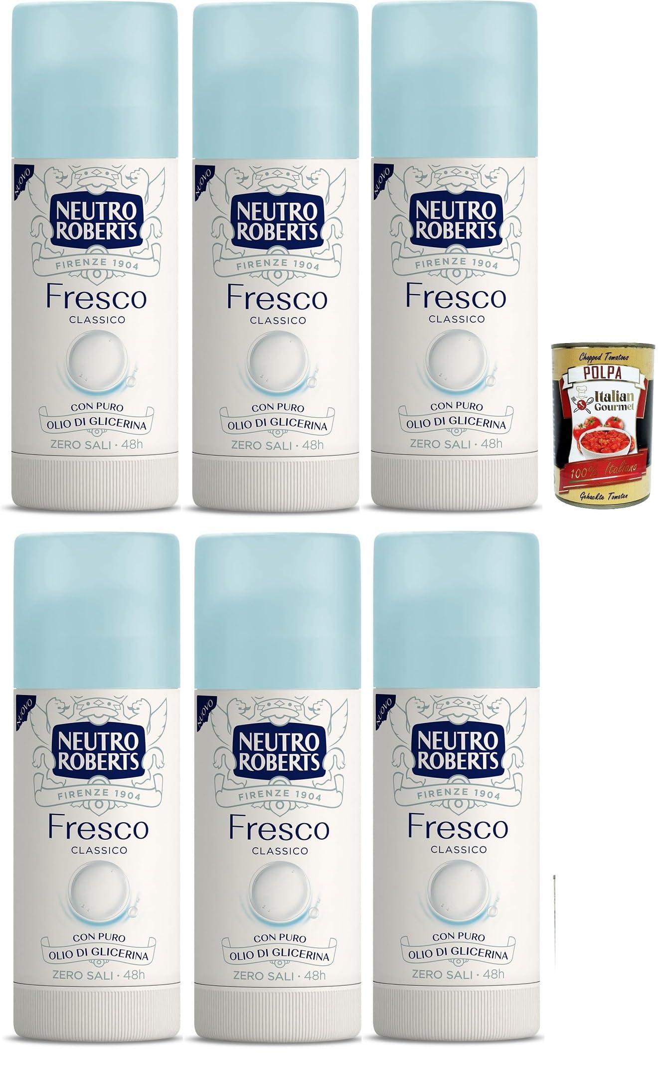 Italian Gourmet E.R. Neutro Roberts Fresco 6-Pack Aluminum-Free Stick Deodorants Zero Stain Natural Protection with Floral Notes 6 x 40ml + Italian Gourmet Polpa 400g
