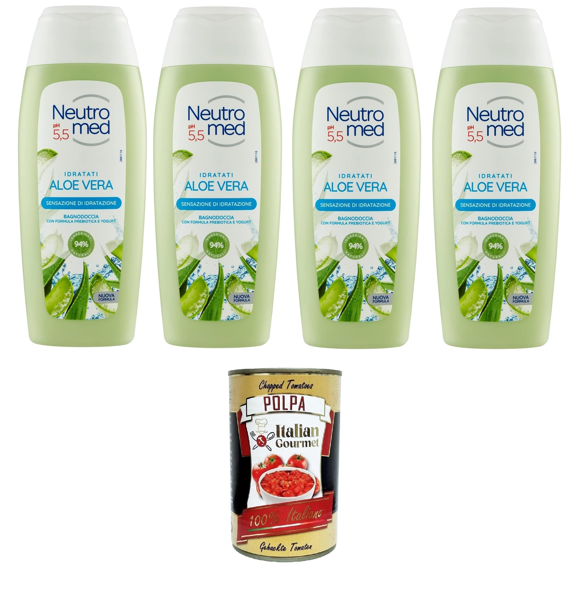 Neutromed Body Wash brings you new sensations on your skin. - Physiologically neutral pH - Skin tolerance dermatologically tested. Matris Animo Curant - Recognized by the Italian Medical Association. Hydrating sensation. Enriched with yogurt proteins, the prebiotic formula gently cleanses and gives you a pleasant feeling of fresh hydration. Aloe vera and yogurt shower gel. Discover the new Neutromed aloe vera and yogurt shower gel and let yourself be enveloped by a hydrating sensation. Free 400g gourmet Italian tomato pulp.