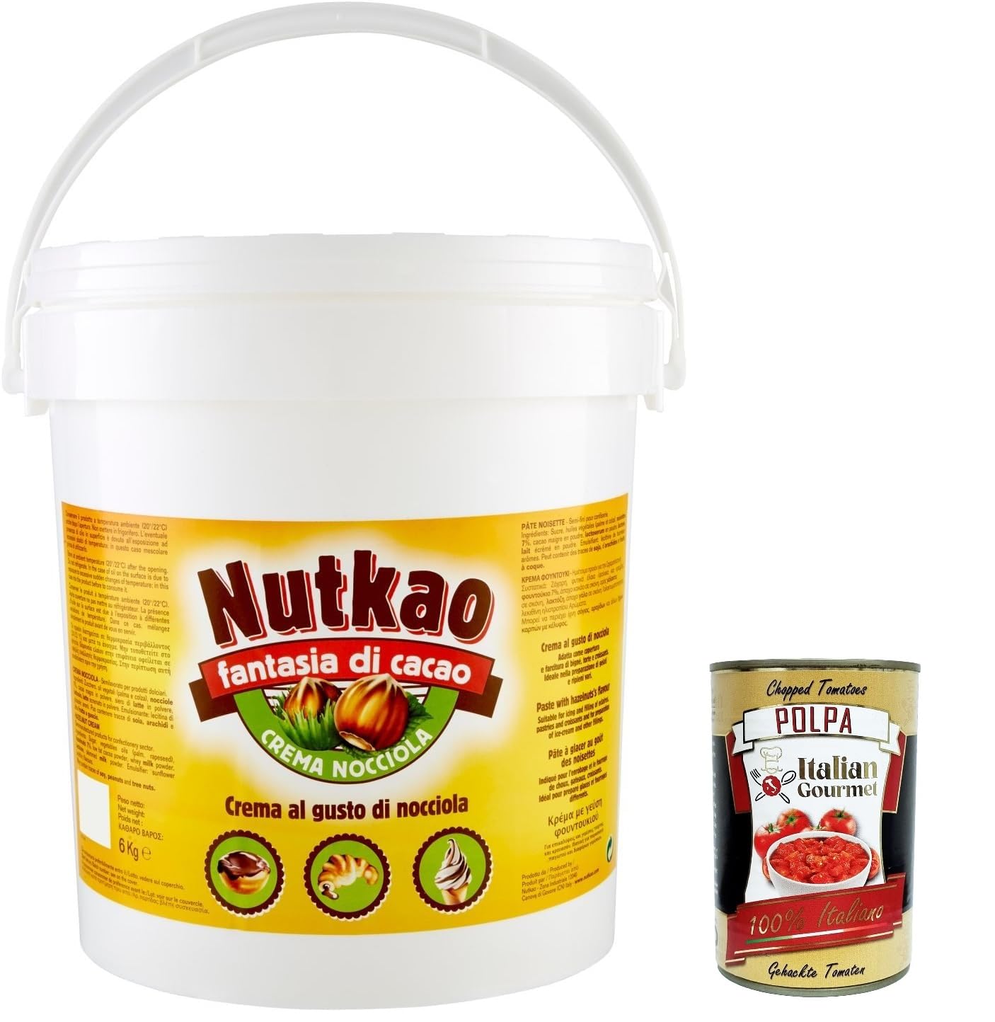 Italian Gourmet E.R. Nutkao Nocciola Cream XXL Nougat Hazelnut Cream Bucket of 6 kg + Gourmet Italian Pulp Pulp 400 g