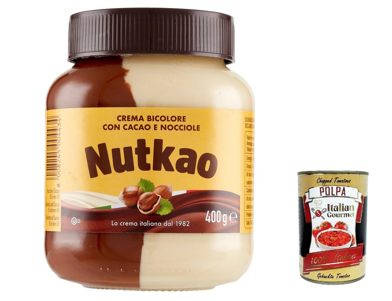 Italian Gourmet E.R. Nutkao Two-Tone Cocoa Hazelnut and Vanilla Cream Set of 6 Spreadable Cocoa Hazelnut and Vanilla Creams 400g + Italian Gourmet Polpa 400g