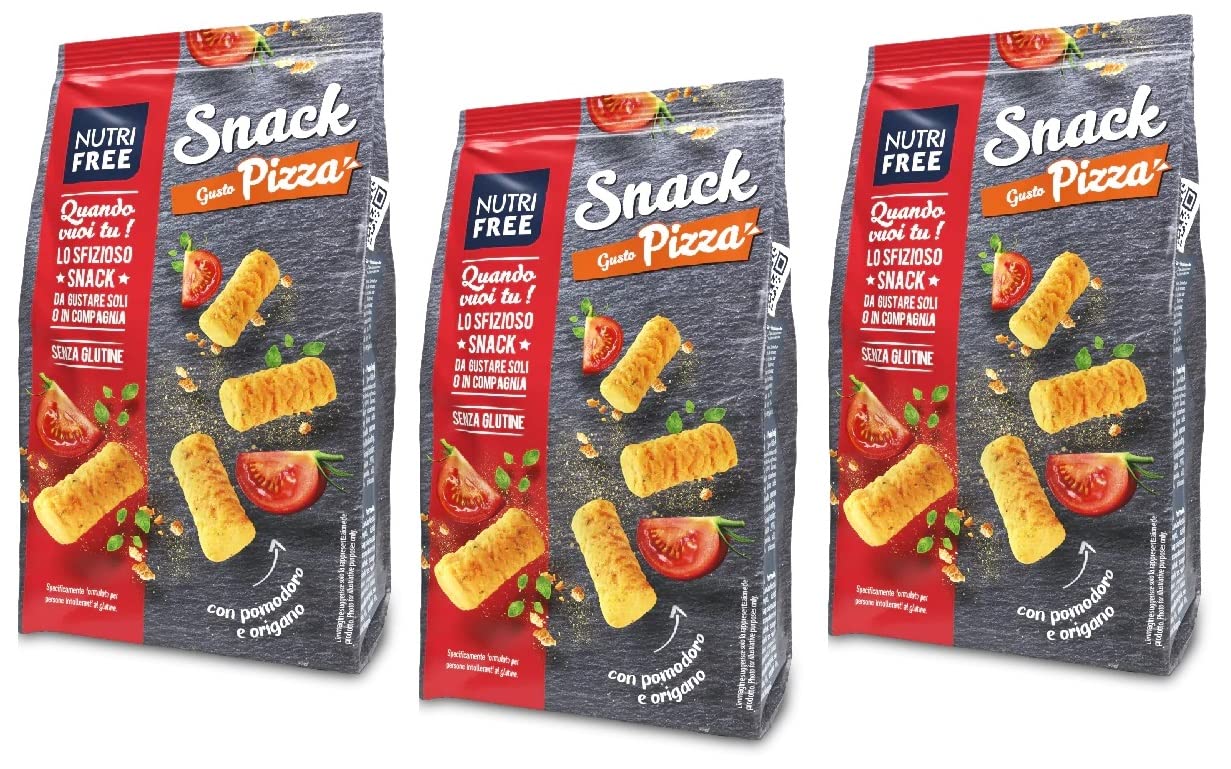 Nutrifree Lot de 3 collations sans gluten avec goût de pizza, substitut de pain, sans lactose et sans œufs, 100 g boîte italienne Gourmet Polpa di Pomodoro 400 g