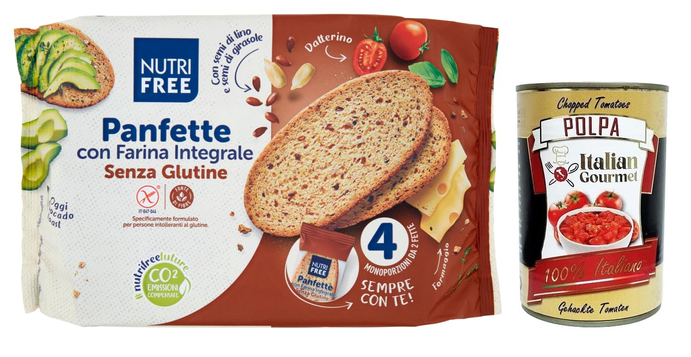 Nutrifree Panfette con Farina Integrale, pain sans gluten avec farine de sarr complet, paquet de 340 g Polpa di Pomodoro Italian Gourmet Polpa di Pomodoro 400 g