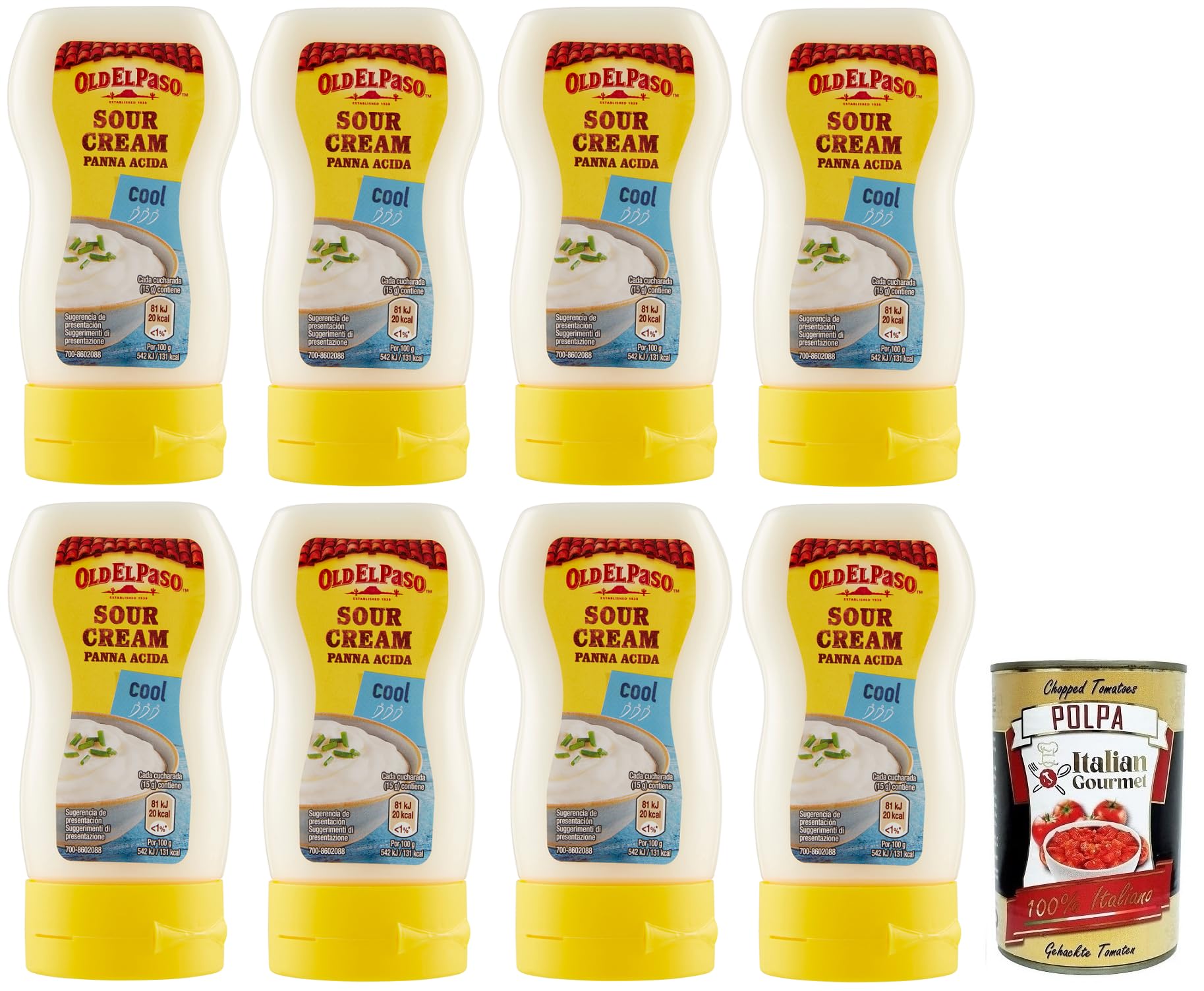 Old el Paso Panna Acida Lot de 8 sauces condiments à la crème sure pour apéritifs au goût mexicain 230 g boîte italienne Gourmet Polpa di Pomodoro 400 g