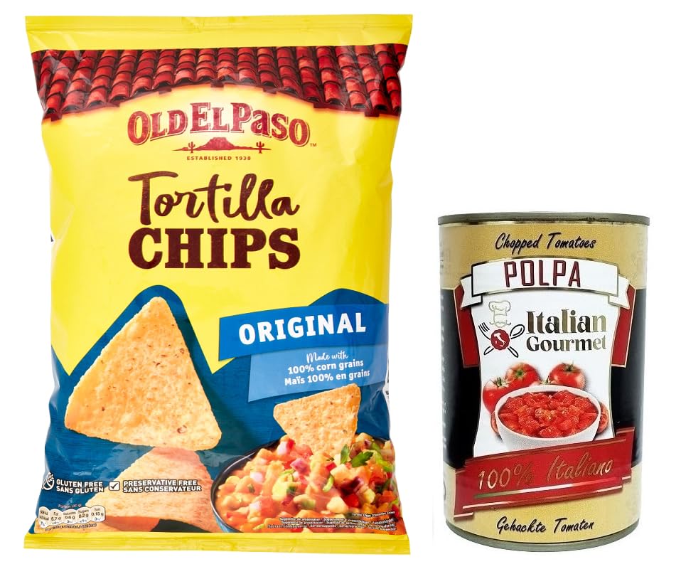 Italian Gourmet E.R. Old el Paso Tortilla Original Mexican Specialities Corn Chips Slightly Salted Corn Snacks to Dip in Sauce 185g Bag + 400g Box Italian Gourmet Polpa di