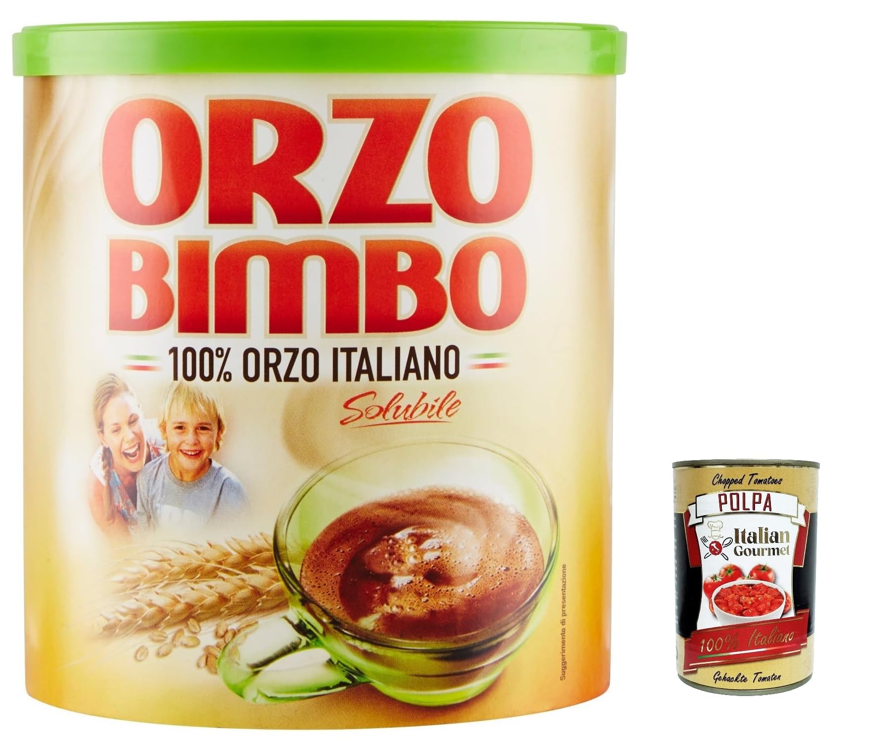 Italian Gourmet E.R. Orzo Bimbo 100% Italian Soluble Barley Bean Coffee 120g + Gourmet Italian Polpa 400g (Pack of 3)