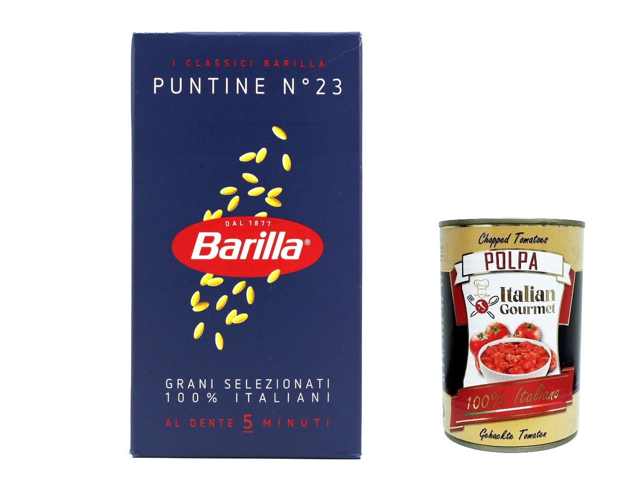 Italian Gourmet E.R. Pack of 20 Barilla Puntine pasta no. 23 - 100% Italian noodles - 500g + 400g Italian gourmet polpa