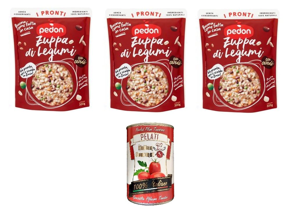 Italian Gourmet E.R. Pack of 3 Pedon I Pronti legume soups 300g + Gourmet Italian Pelati 400g