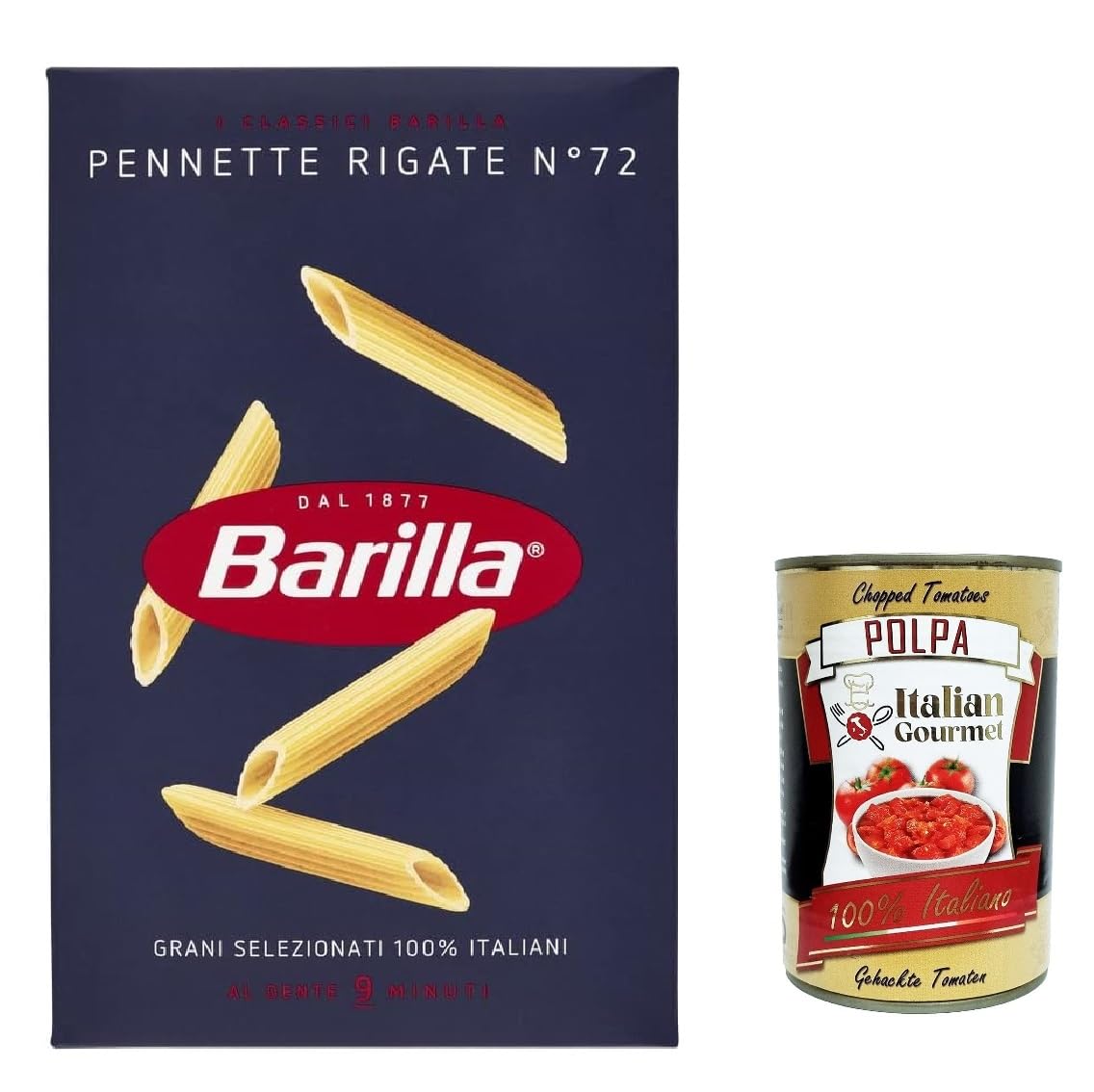 Lot de 5 paquets de pâtes Barilla Pennette rigate n 72, 100 nouilles italiennes 500 g polpa gastronomique italien 400 g