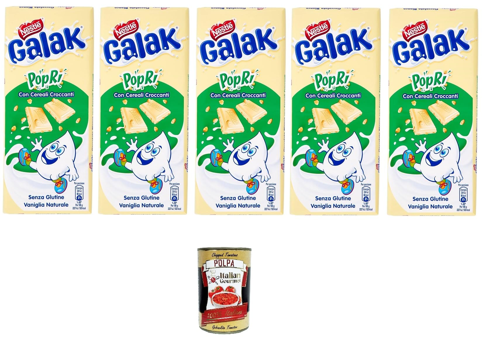 Italian Gourmet E.R. Pack of 5 Galak PoPri white chocolates with cereals 90g + Gourmet Italian polpa 400g