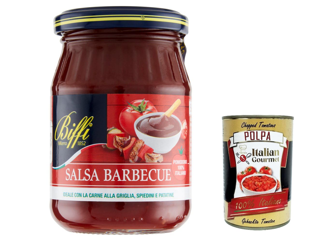 Italian Gourmet E.R. Pack of 6 Biffi barbecue salsa barbecue sauce mildly spicy with a smoky flavor 100% Italian tomato 210g + gourmet Italian polpa 400g